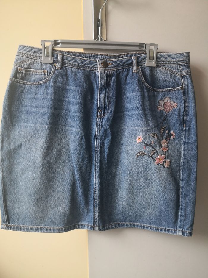 Jupe en jean bleue avec broderie 👖👕 Beaucoup d'autres articles à - de 5 € dans mon dressing venez y faire un tour 👛 Profitez et achetez en lot je fais des prix pour plusieurs articles achetés