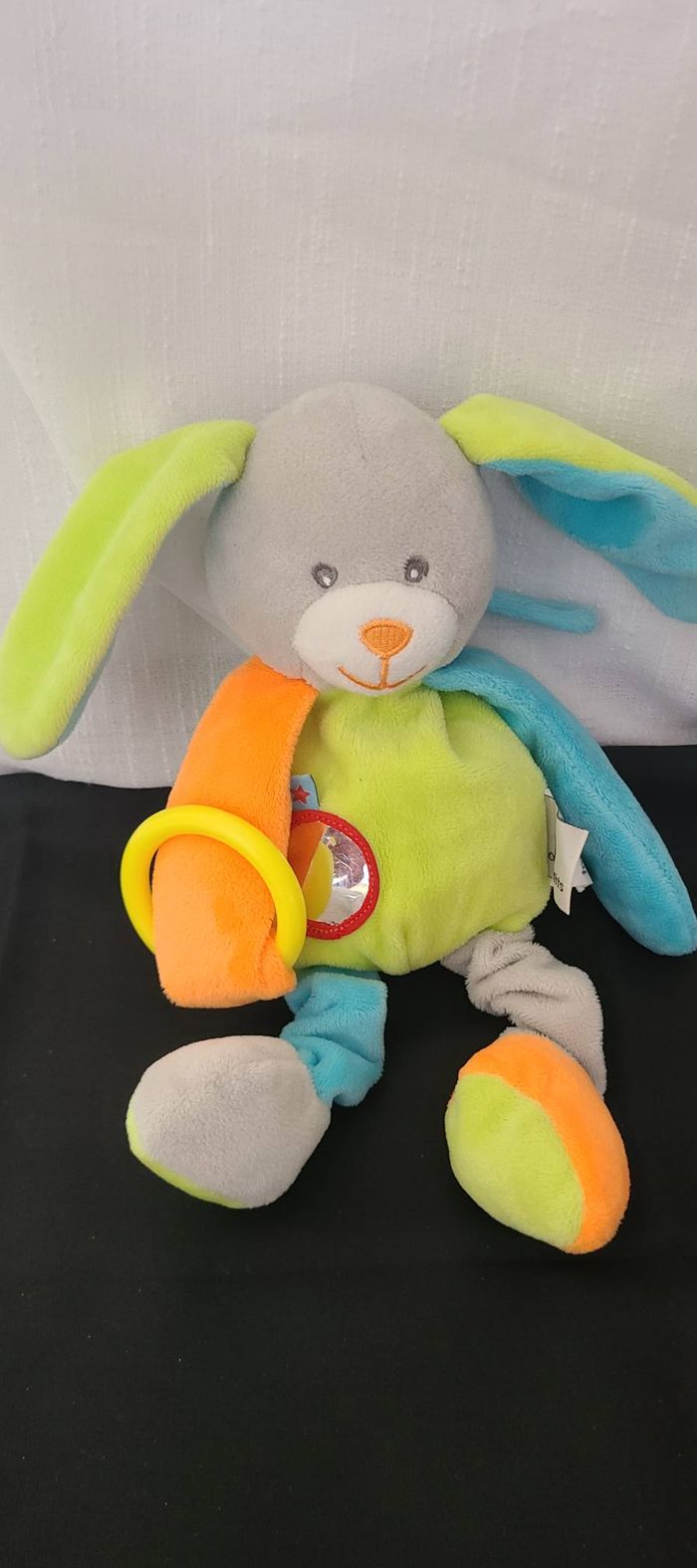 Peluche d'éveil lapin bleu vert U tout petits