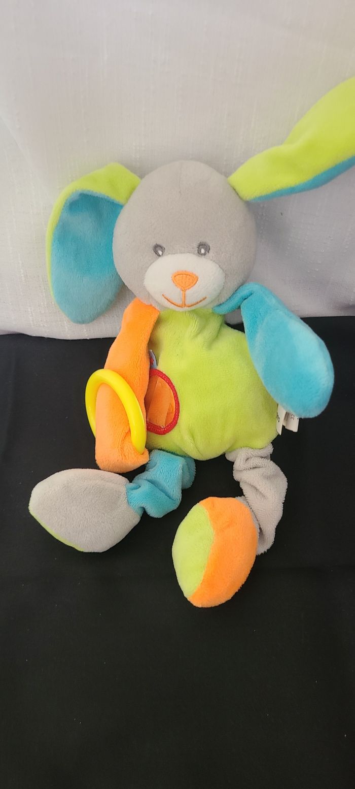 Peluche d'éveil lapin bleu vert U tout petits - photo numéro 1