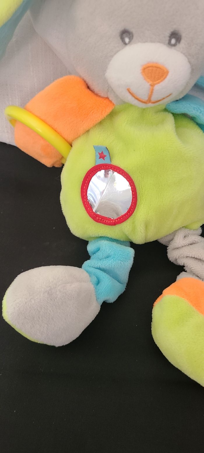 Peluche d'éveil lapin bleu vert U tout petits - photo numéro 5