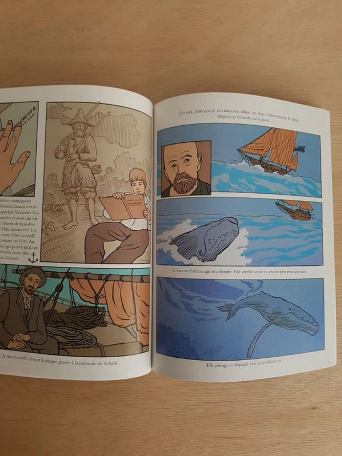 Seul à bord. Pour l’aider à affronter pirates et tempêtes, pourtant, il n’est pas tout seul. Ses livres chéris, les héros du passé qu’il admire, et ses nombreux et vifs souvenirs d’enfance l’accompagnent. Sa route croisera même celle de Fanny Stevenson, la veuve de l’auteur de L’île au trésor.