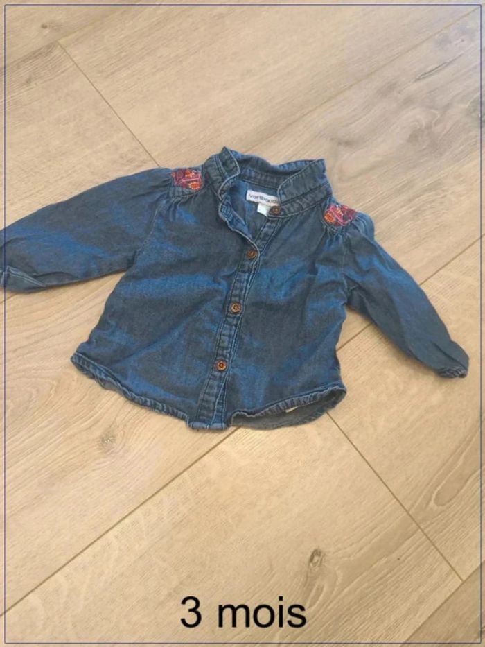 Chemise en jean, à boutons mais pas pression. Petits détails sur les épaules. En très bon état, pas de tâches ni de trous #fille3moisgameirot