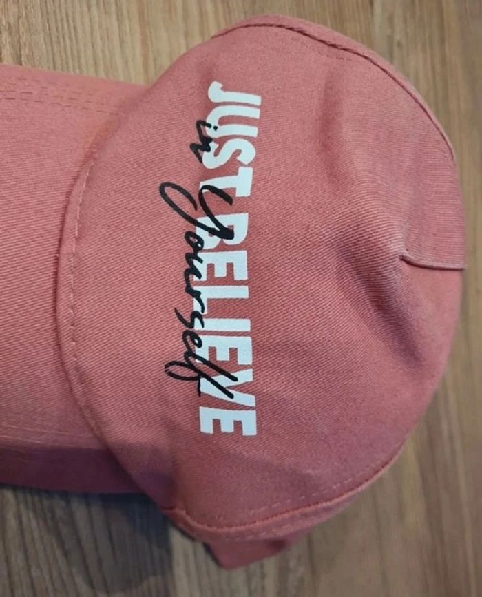 Casquette avec message sur le devant "Just believe in yourself" En très bon état Taille unique en coton Mais réglable à l'arrière Couleur rose foncé Marque inconnue #tototte2605accessoires