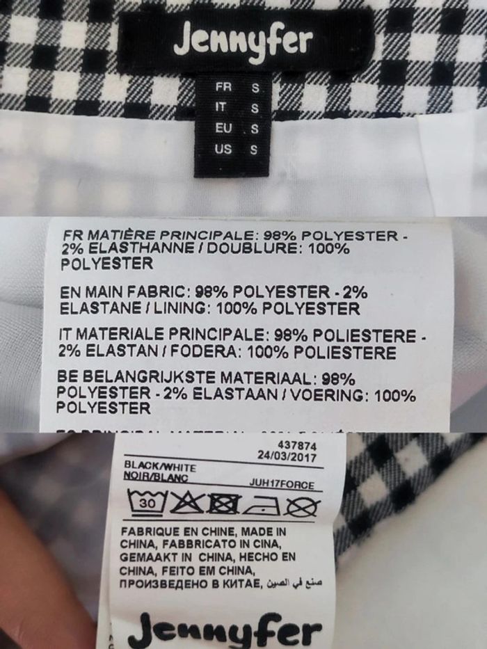 🏁 Vendeuse Éco-Responsable 🏁 ⬇️ Toutes les informations sur l'article ⬇️  ⁠෴﹏෴﹏෴﹏෴﹏෴﹏෴ 💸 ℝ𝕖́𝕕𝕦𝕔𝕥𝕚𝕠𝕟𝕤 𝕤𝕦𝕣 𝕝𝕖𝕤 𝕃𝕠𝕥𝕤 💸 🌱 𝟐 𝐚𝐫𝐭𝐢𝐜𝐥𝐞𝐬 : -5% ☘️ 𝟑 𝐚𝐫𝐭𝐢𝐜𝐥𝐞𝐬 : -10% 🍀 𝟓 𝐚𝐫𝐭𝐢𝐜𝐥𝐞𝐬 : -15% 🌿 𝟏𝟎 𝐚𝐫𝐭𝐢𝐜𝐥𝐞𝐬 : Réduction supplémentaire  ⁠෴﹏෴﹏෴﹏෴﹏෴﹏෴ 🗂️ 𝗖𝗮𝘁𝗲́𝗴𝗼𝗿𝗶𝗲 : #flocofemme36 📏 𝗧𝗮𝗶𝗹𝗹𝗲 : 36/S | Longueur de la jupe ≈ 37cm 🏷️ 𝗠𝗮𝗿𝗾𝘂𝗲 : Jennyfer 🎨 𝗖𝗼𝗹𝗼𝗿𝗶𝘀 : Noir, blanc, gris 🏁 𝗧𝗵𝗲̀𝗺𝗲 / 𝗠𝗼𝘁𝗶𝗳 : Petit carreaux 🧵 𝗖𝗼𝗺𝗽𝗼𝘀𝗶𝘁𝗶𝗼𝗻 : Matière principale : 98% Polyester, 2% Élasthanne / Doublure : 100% Polyester 🌍 𝗣𝗮𝘆𝘀 𝗱𝗲 𝗙𝗮𝗯𝗿𝗶𝗰𝗮𝘁𝗶𝗼𝗻 : Chine 🇨🇳 ❌ 𝗗𝗲́𝗳𝗮𝘂𝘁(𝘀) : Aucun 📜 𝗗𝗲́𝘁𝗮𝗶𝗹𝘀 𝘀𝘂𝗽𝗽𝗹𝗲́𝗺𝗲𝗻𝘁𝗮𝗶𝗿𝗲𝘀 : Minijupe droite, crayon, moulante. Taille haute. Volant que le côté. Fermeture éclaire invisible. Volant froufrou. ෴﹏෴﹏෴﹏෴﹏෴﹏෴ 🌈 𝑴𝒆𝒔 𝒎𝒆𝒏𝒔𝒖𝒓𝒂𝒕𝒊𝒐𝒏𝒔 : - 1m82 / 182 cm - Hanche ≈ 85 cm - Taille ≈ 74 cm - Bonnet A ෴﹏෴﹏෴﹏෴﹏෴﹏෴ 🛍️ 𝐷𝑟𝑒𝑠𝑠𝑖𝑛𝑔 𝑑𝑒 : #clairec Style rétro pin-up girly tendance mode moderne intemporel 1980 80 80s 1990 90 90s sexy Printemps / été / automne / hiver rock punk grunge Schwarz-weißer Minirock mit Rüschen und Gingham-Karomuster Black and white gingham check ruffle mini skirt Zwart-witte minirok met gingham-ruit en ruches Minigonna con volant a quadretti bianchi e neri Minifalda con volantes y cuadros vichy blancos y negros Minissaia xadrez preta e branca com babados Schwaarz wäiss Gingham Check Rüschen Mini Rock
