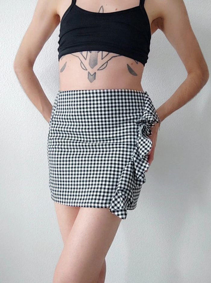 Mini jupe volant carreaux vichy noir blanc / Jennyfer - 36/S - photo numéro 8