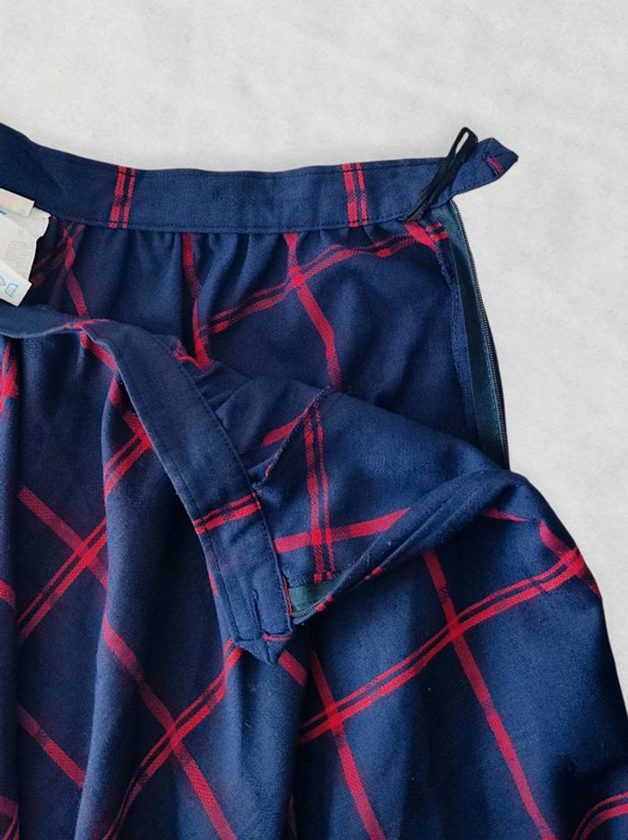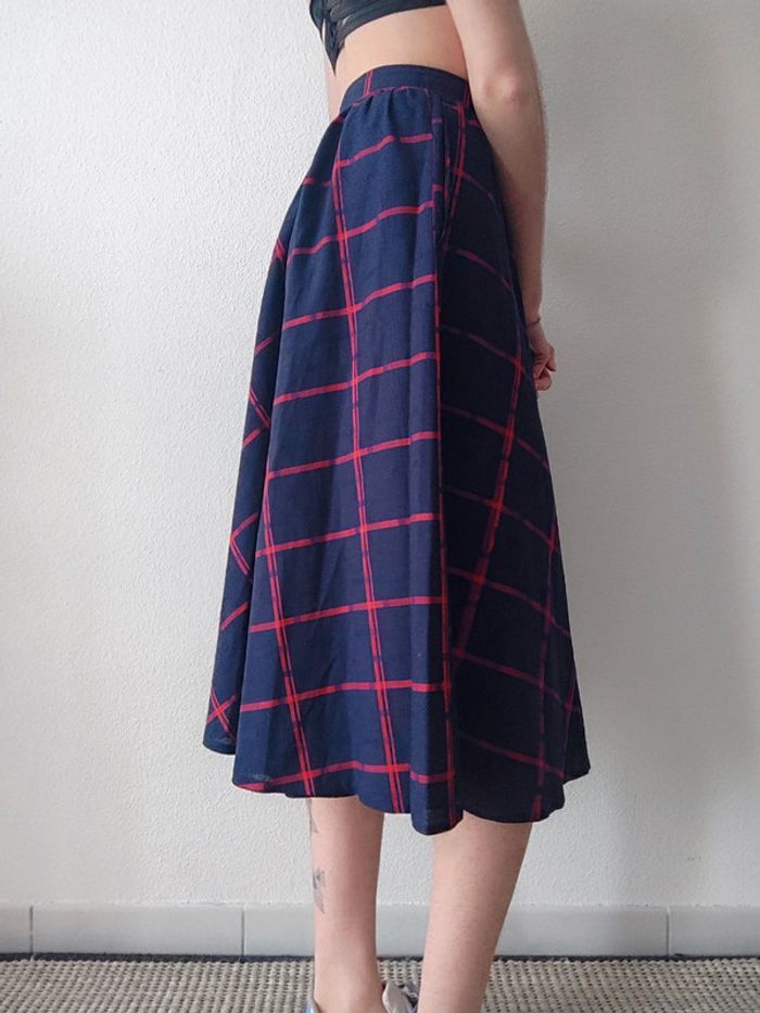 Jupe longue évasée bleu marine tartan rouge vintage 70-80 🇬🇷 34/XS à 36/S - photo numéro 5