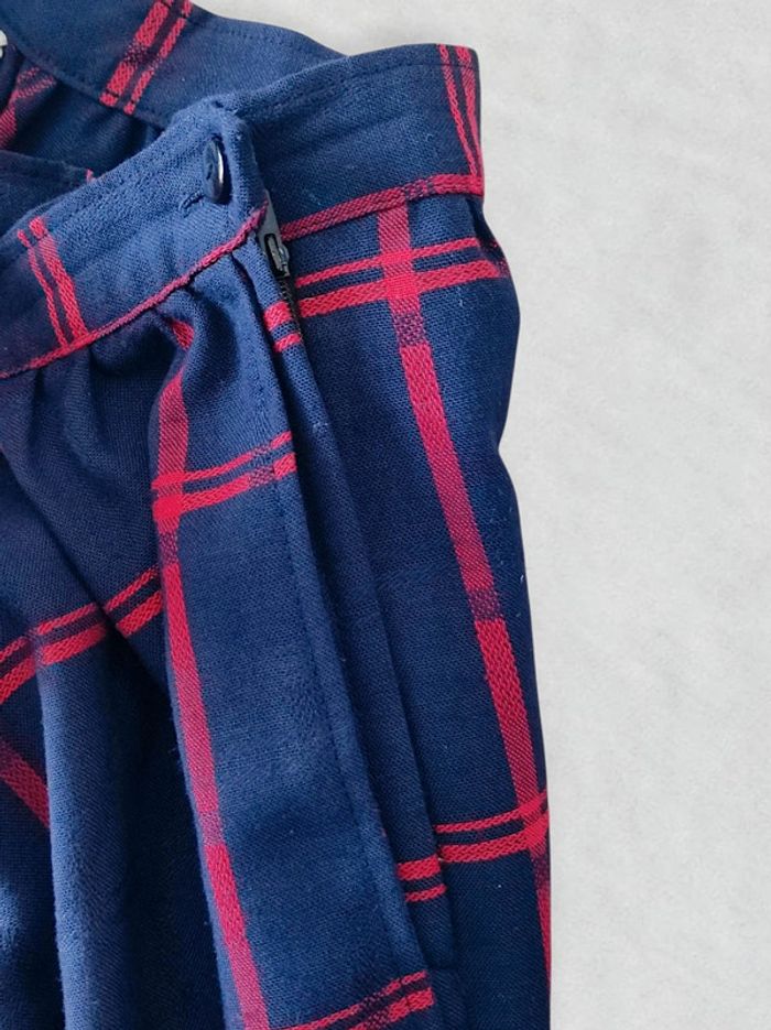 Jupe longue évasée bleu marine tartan rouge vintage 70-80 🇬🇷 34/XS à 36/S - photo numéro 4