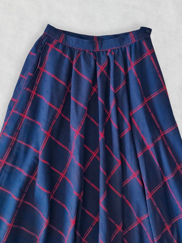 Jupe longue évasée bleu marine tartan rouge vintage 70-80 🇬🇷 34/XS à 36/S - photo numéro 7