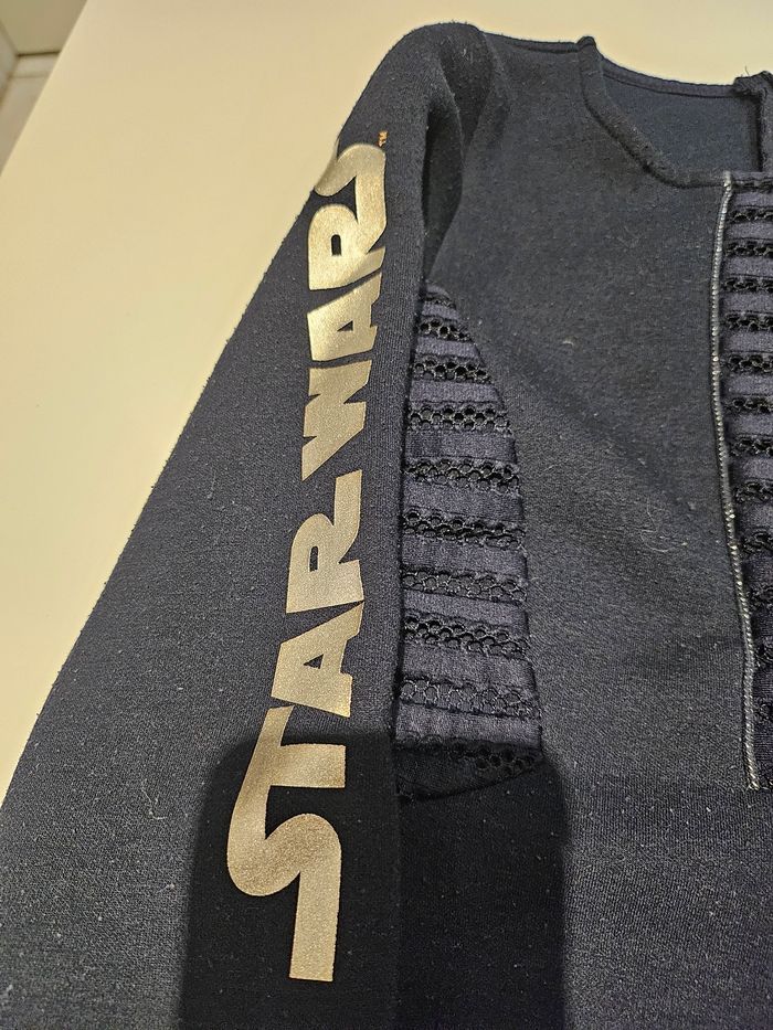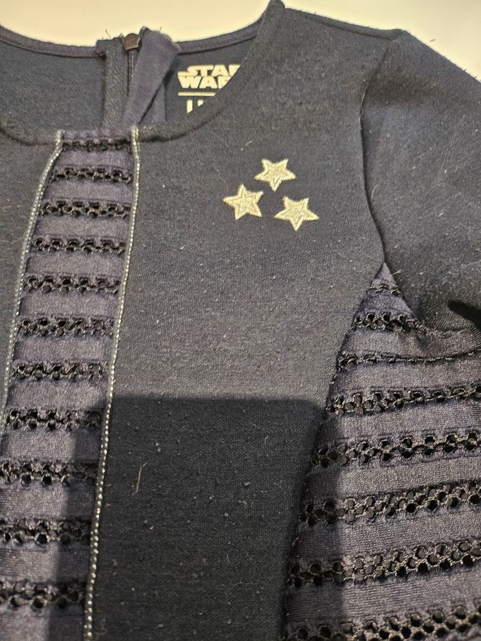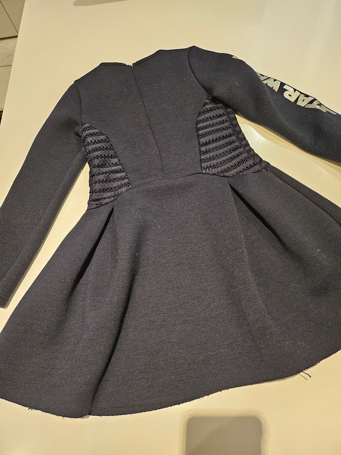 Robe courte à manches longues. Fermeture éclair dans le dos. Details argentés Star Wars. Quelques bouloches. Marque : IKKS Taille : 8 ans
