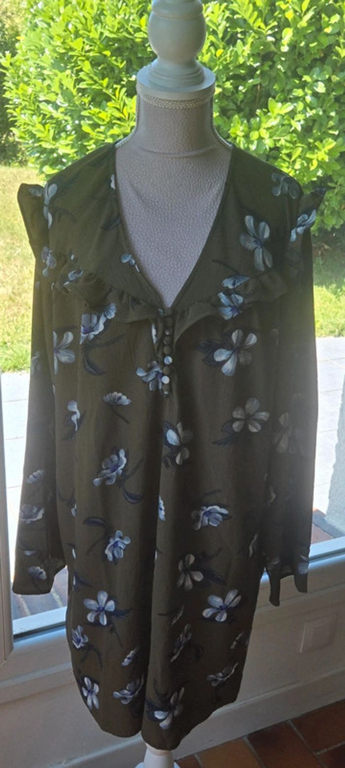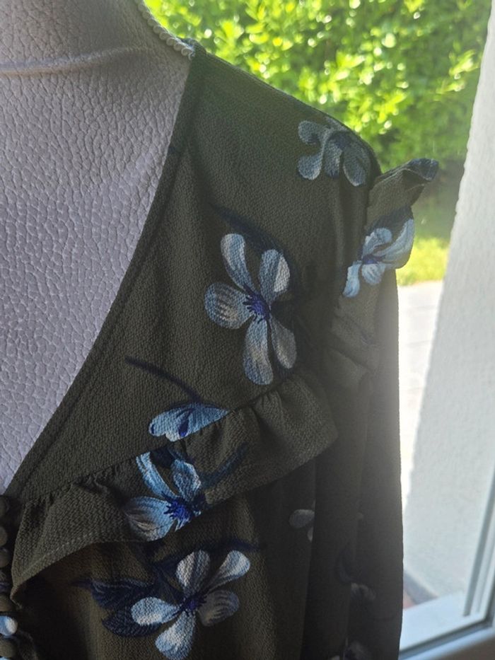 #46femme_tatianaalena Jolie robe kaki fleuries Marque ◼️ : Kiabi Taille 📏 : taille 46 État 🏷️: Tres Bon état Couleur 🎨 : Kaki
