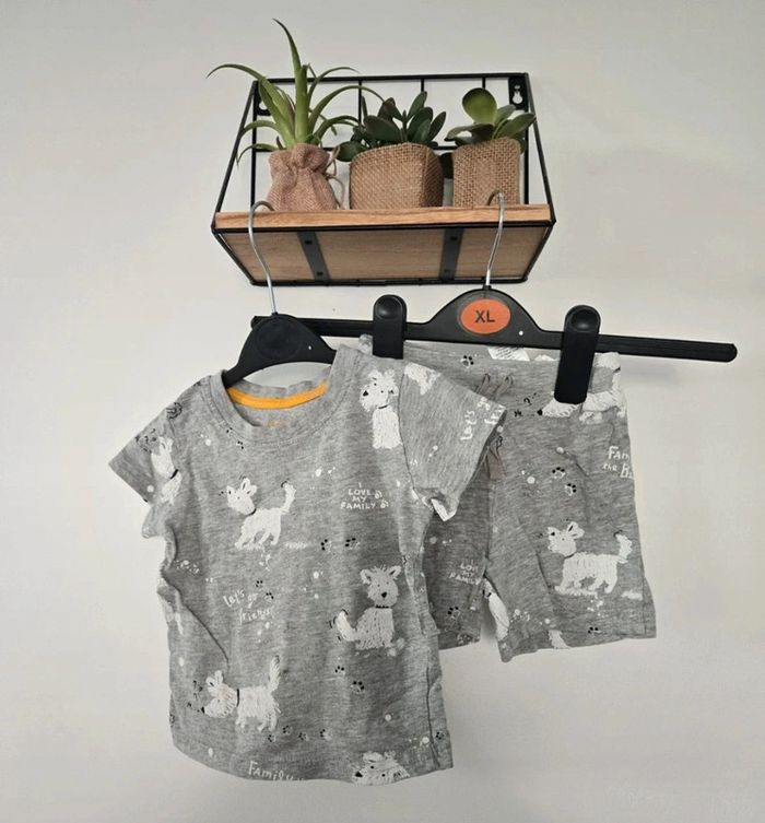 #9moisgarçon_tatianaalena #12moisgarçon_tatianaalena Joli ensemble d'été 🐕 Marque ◼️: Primark Taille 📏 : 9/12 mois État 🏷️: Bon état Couleur 🎨 : Blanc / Gris