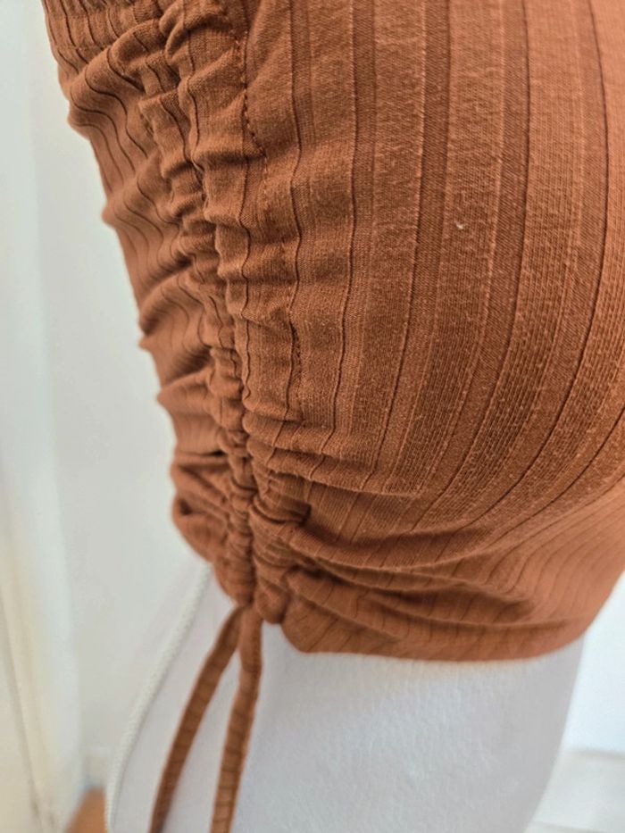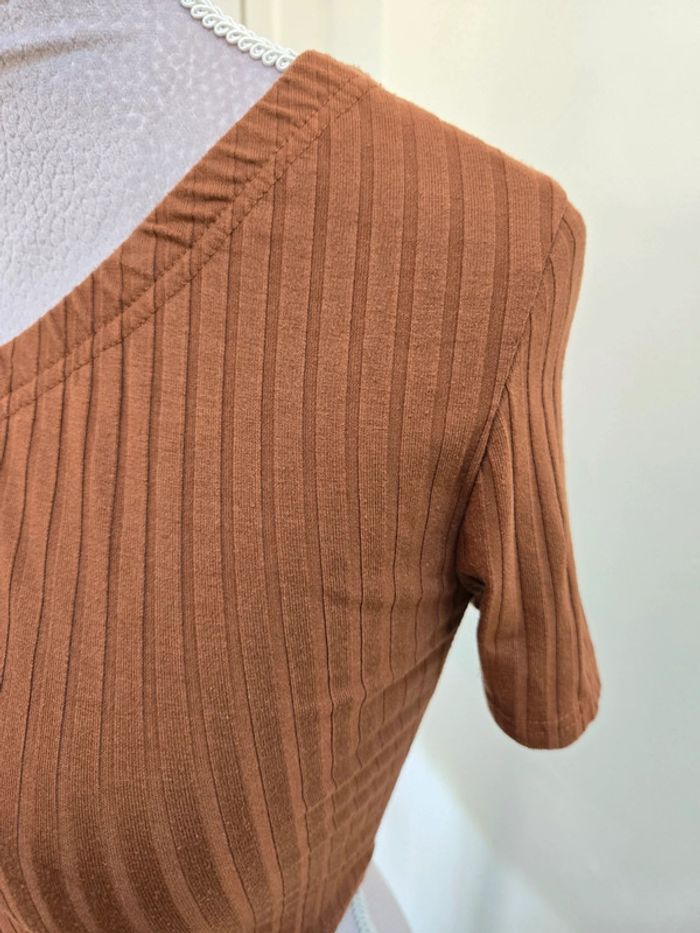 T-shirt marron 1 manche taille XS - photo numéro 3