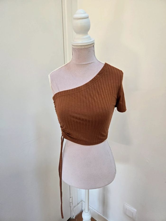T-shirt marron 1 manche taille XS - photo numéro 2