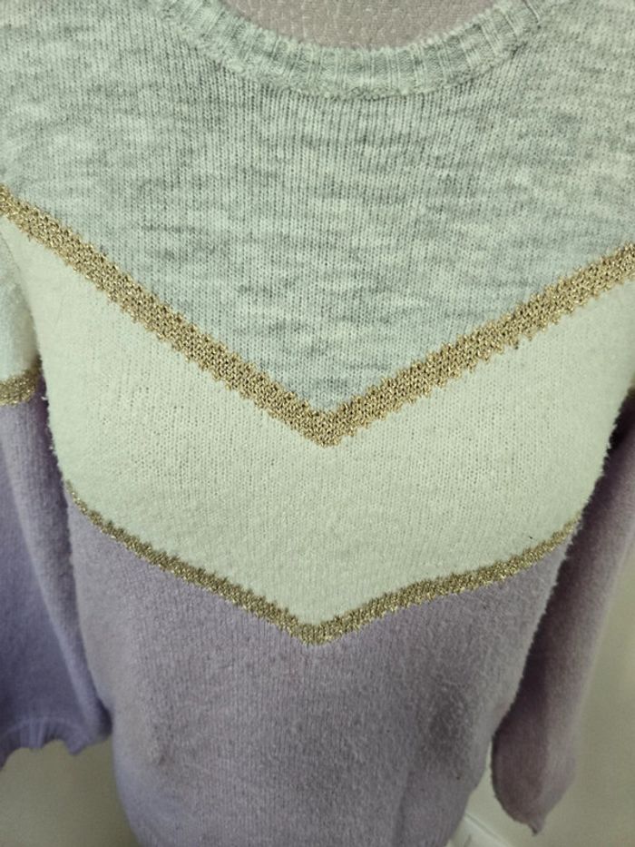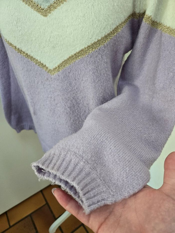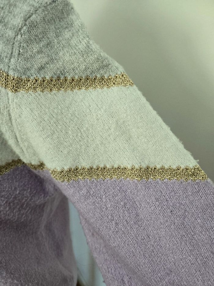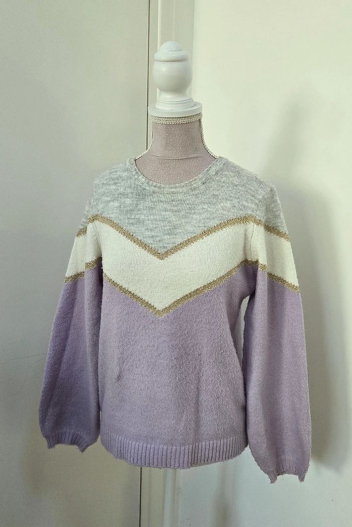 Pull en laine lila blanc et gris In extenso 12 ans