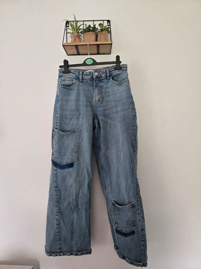 #14ansfille_tatianaalena #34femme_tatianaalena Joli jean large Marque ◼️: Jennyfer Taille 📏 : Taille 34 État 🏷️: Tres bon état Couleur 🎨 : Bleu