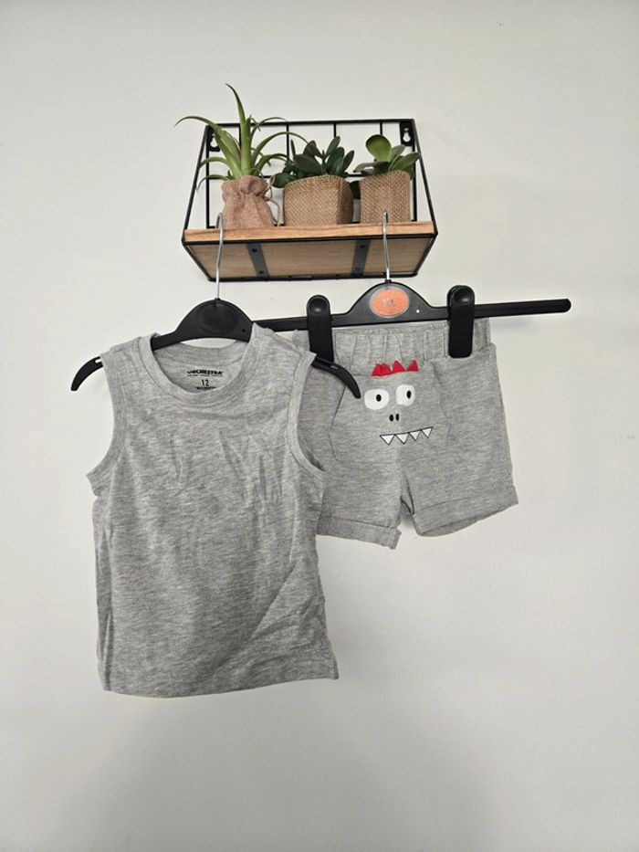 #12moisgarçon_tatianaalena Joli ensemble d'été Marque ◼️: Orchestra Taille 📏 : 12 mois État 🏷️: Très bon état Couleur 🎨 : Gris / Rouge