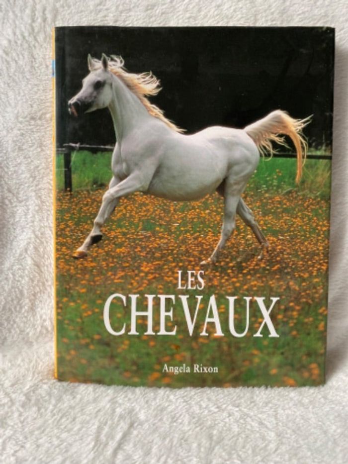Livre les chevaux par Angela Rixon. La feuille de la couverture arrière est pliée (voir photo). Comportement du cheval, races, chevaux de travail et compétitions.