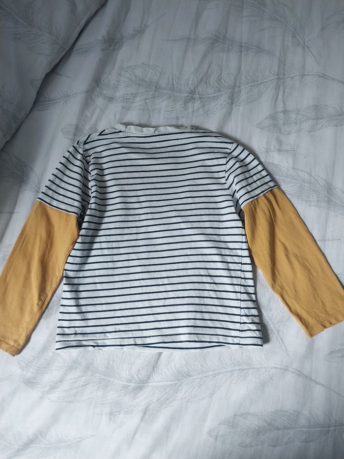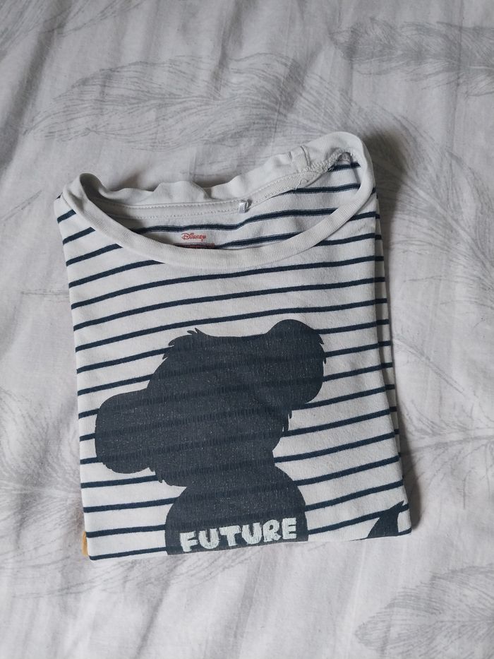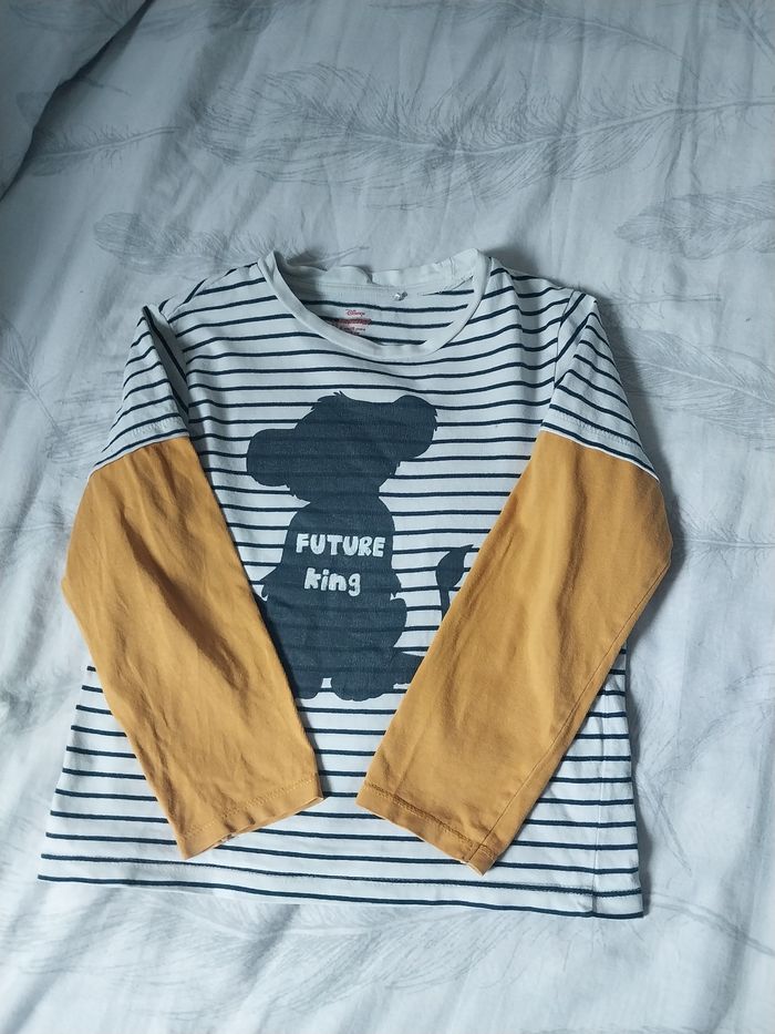 Adorable t-shirt rayé à manches longues signé Disney x Orchestra. Motif silhouette de Simba avec l’inscription "Future King" 🦁. Manches contrastées jaune moutarde, super stylé ! 🔹 Taille : 6 ans / 116 cm 🔹 100 % coton 🔹 Bon état général 💌 Envoi rapide et soigné ! #Disney #RoiLion #Simba #Orchestra #Garçon6ans