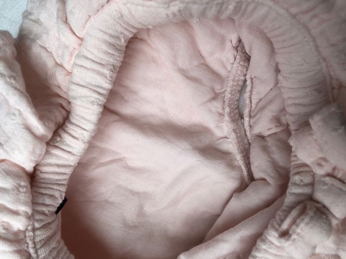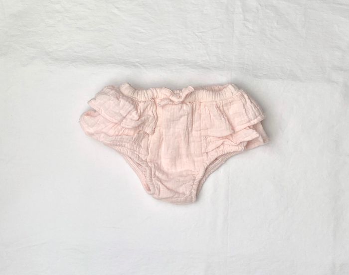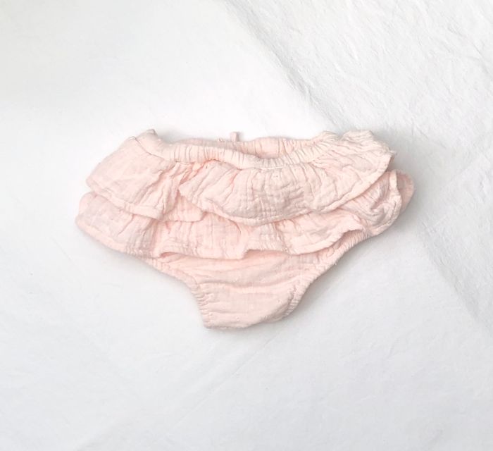 Petit nœud sur l’avant et deux volants sur les côtés et sur les fesses.