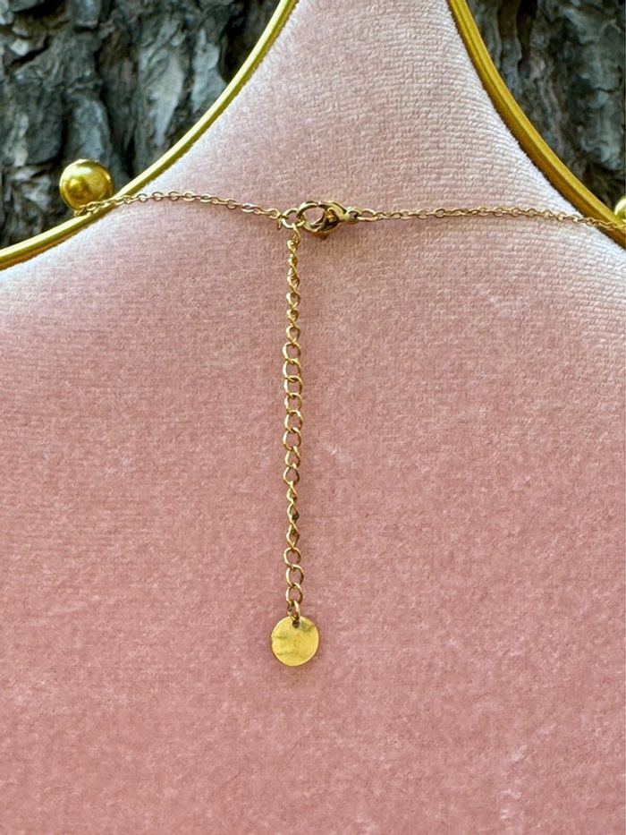 Collier chaîne réglable acier inoxydable or plaque rectangle résine turquoise cristaux - photo numéro 5