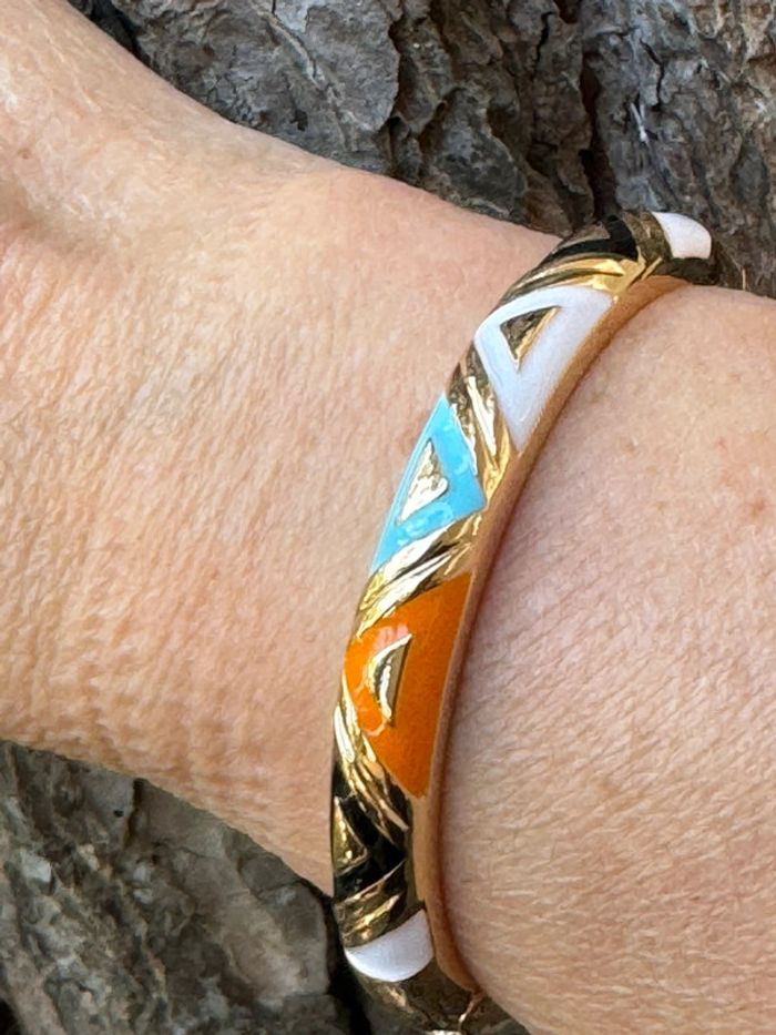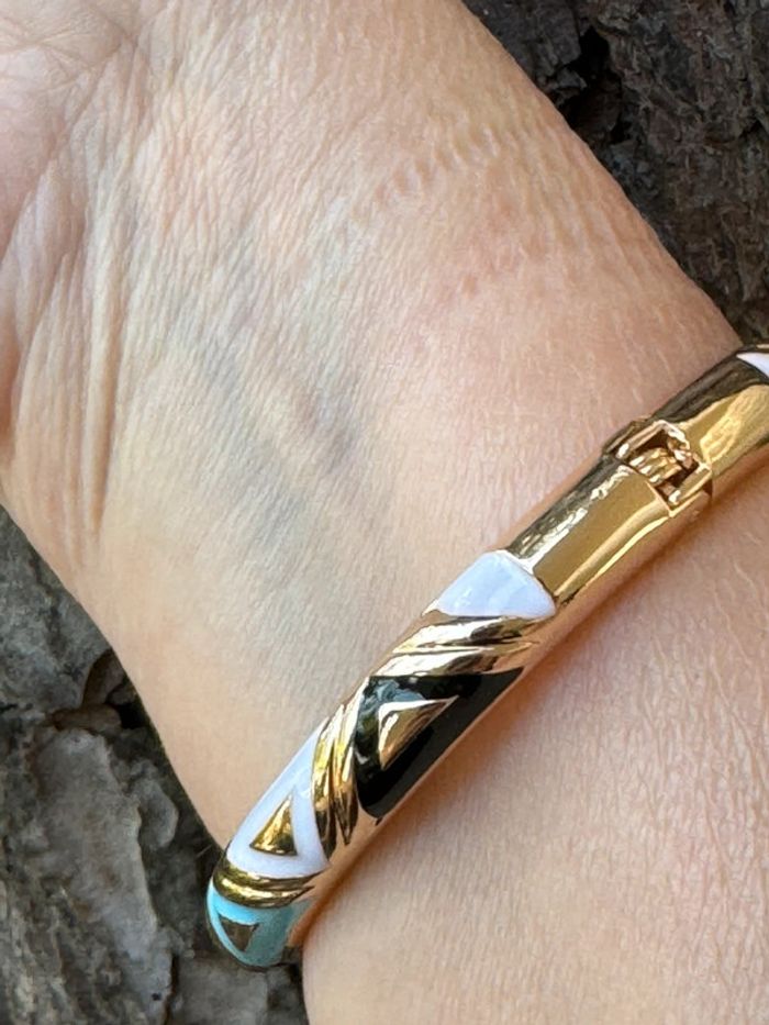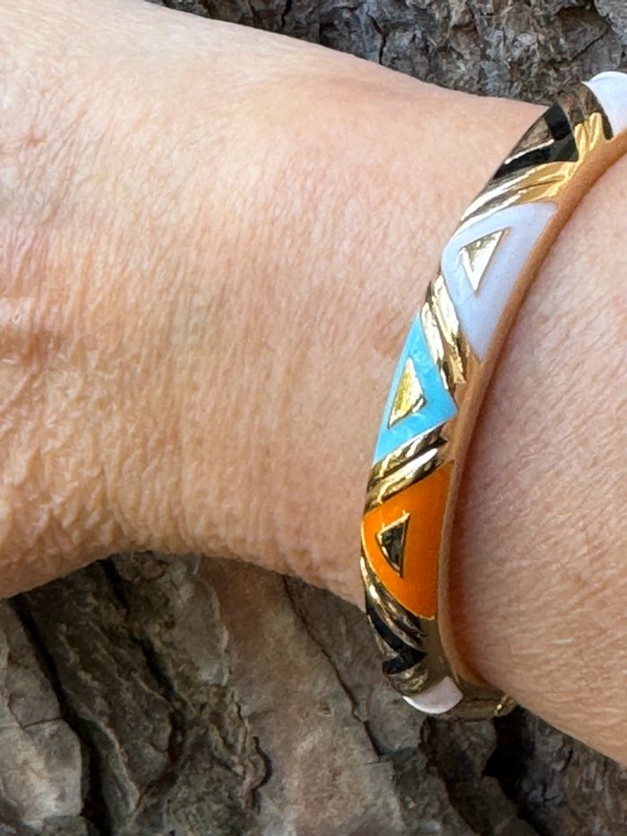 Jonc MILE MiLA qui s’ouvre acier inoxydable or et résine couleurs blanc, orangé, bleu pastel, noir (6,5 cl de diamètre fermé) de qualité neuf Merci de ne pas passer par Vinted go svp