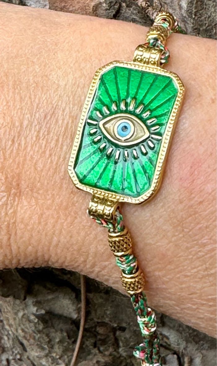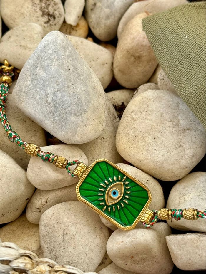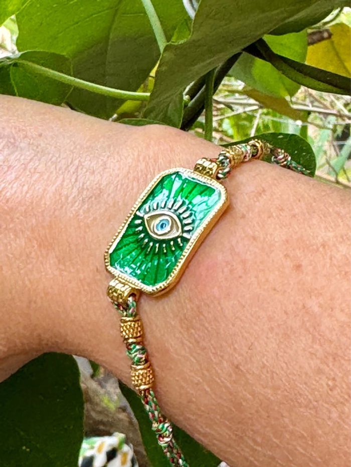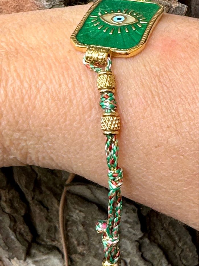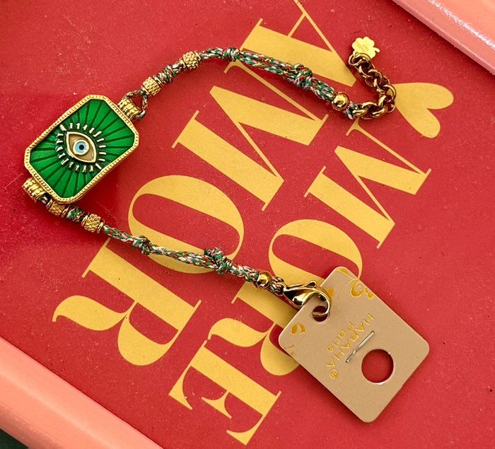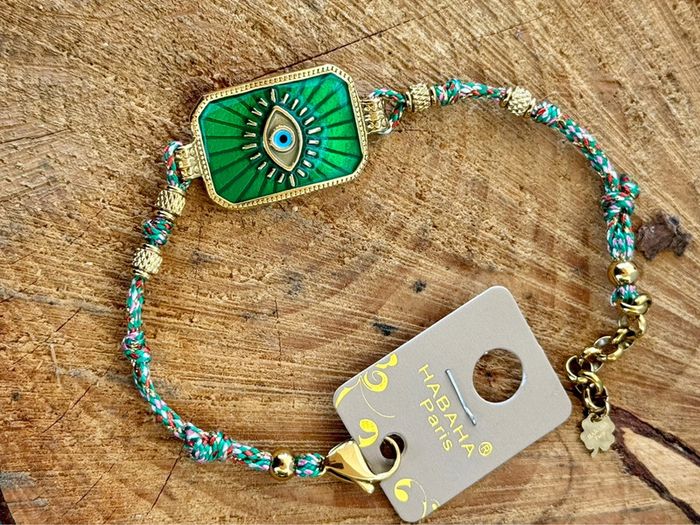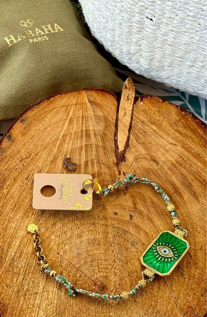 Bracelet habaha paris cordon tissés grigri médaille carré résine acier œil