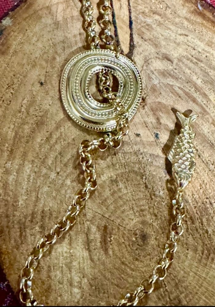 Collier sautoir V chaîne et cercle épais finition poisson acier inoxydable or habaha pais - photo numéro 5