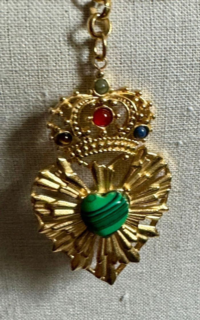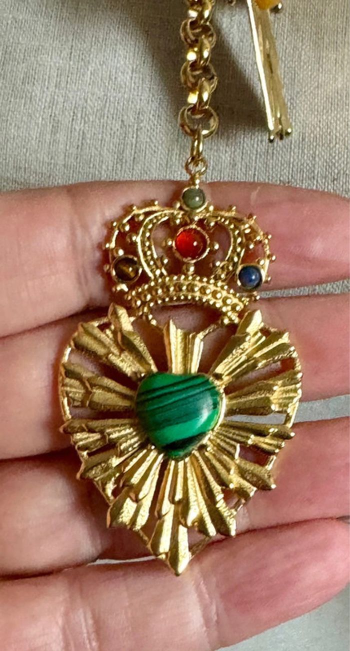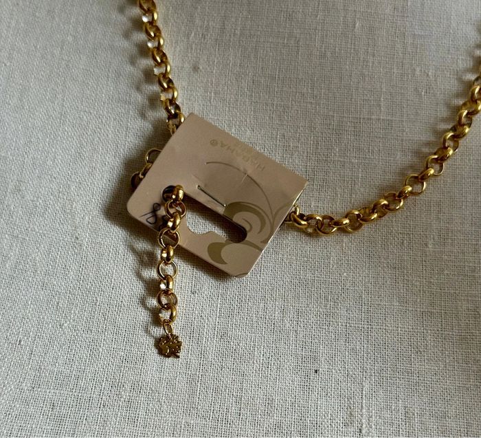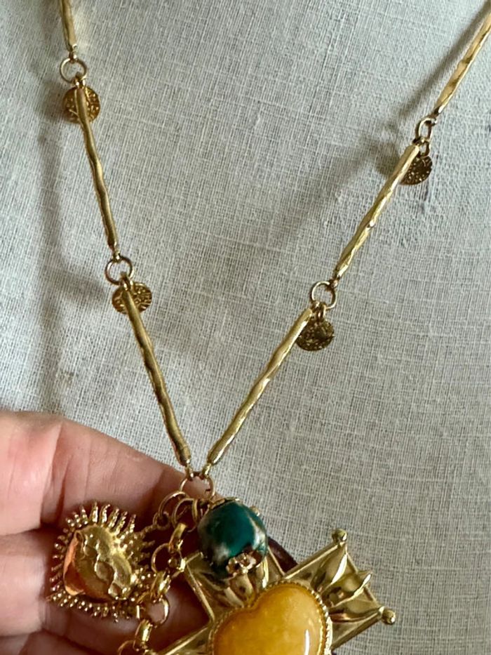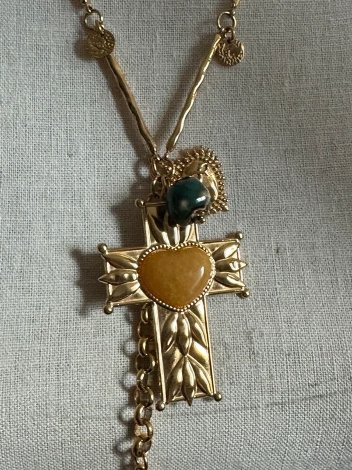 Superbe sautoir V réglable pampilles croix et cœurs xl perles naturelles sublime acier inoxydable or de qualité marque HABAHA Paris neuf dans pochon
