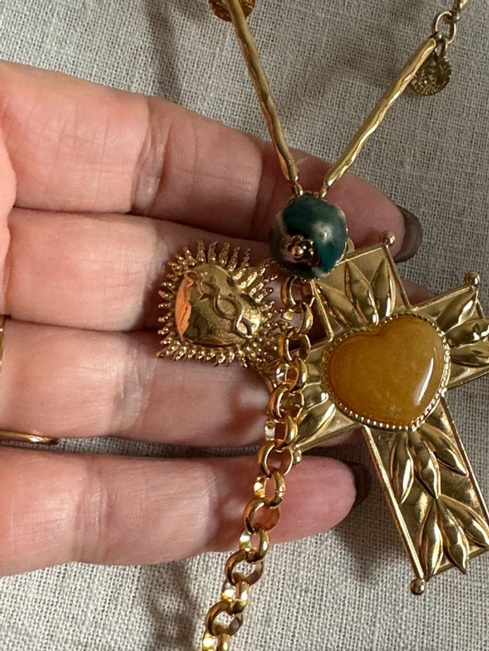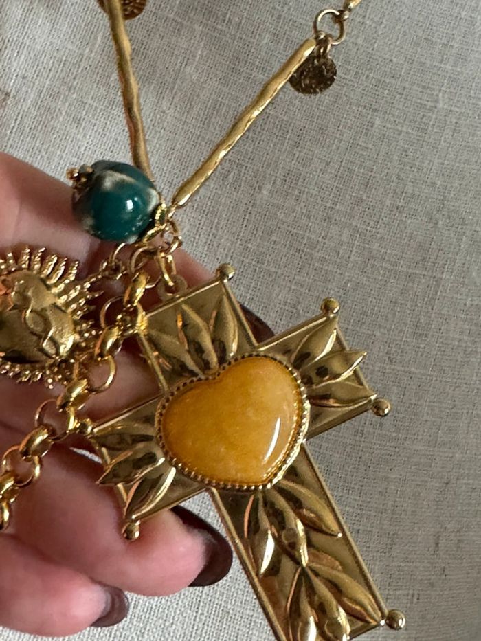 Collier sautoir habaha Paris croix cœurs xl perles naturelles acier inoxydable or - photo numéro 6
