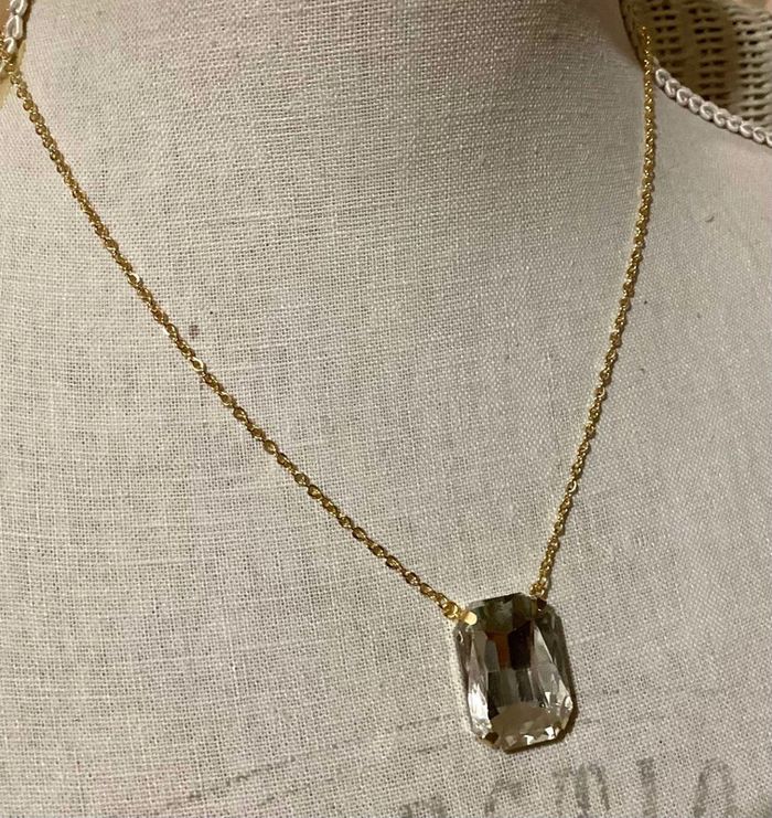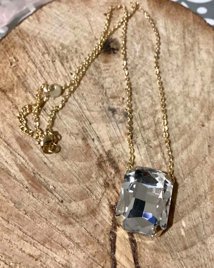 Collier réglable acier inoxydable or pavé multi facettes transparent - photo numéro 10