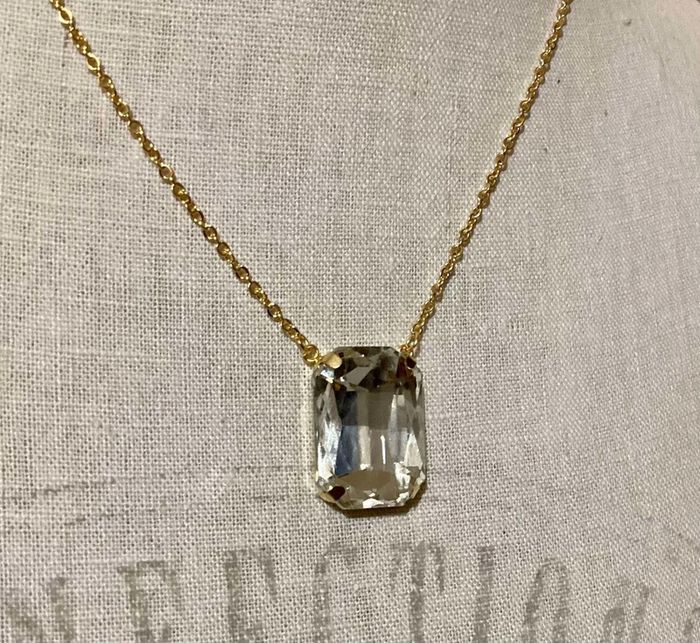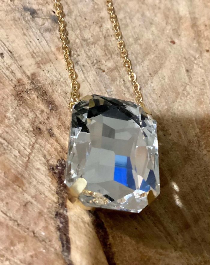 Collier réglable acier inoxydable or pavé multi facette transparent