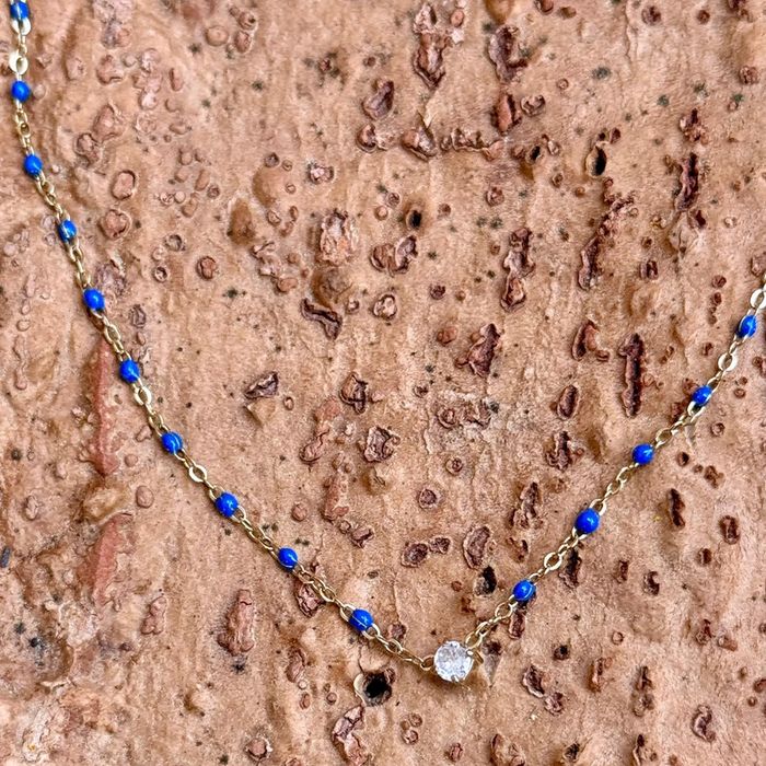Collier perles résine bleu zircon acier inoxydable or - photo numéro 2