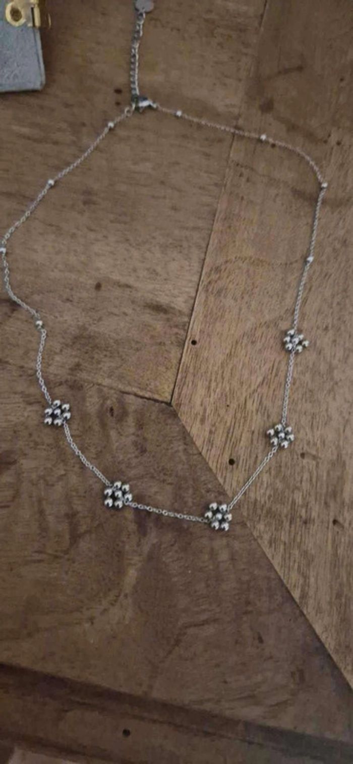 Collier chaîne acier inoxydable argent petit fleurs boules réglable - photo numéro 4