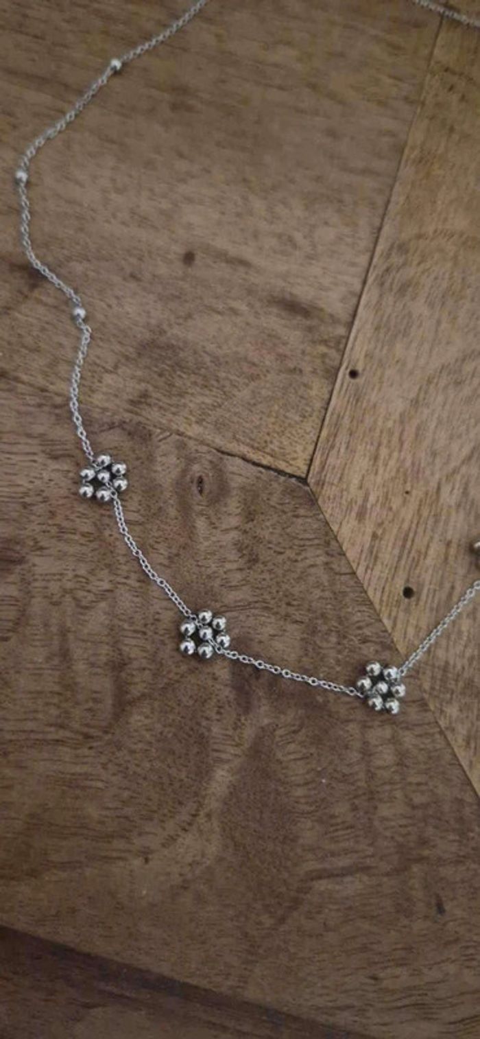 Collier chaîne acier inoxydable argent petit fleurs boules réglable - photo numéro 1