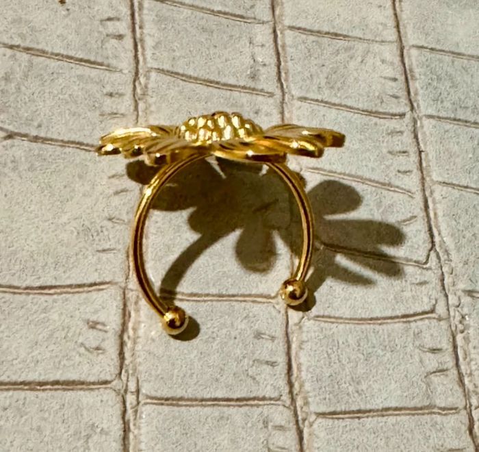 Bague fleur marguerite réglable acier inoxydable or - photo numéro 2