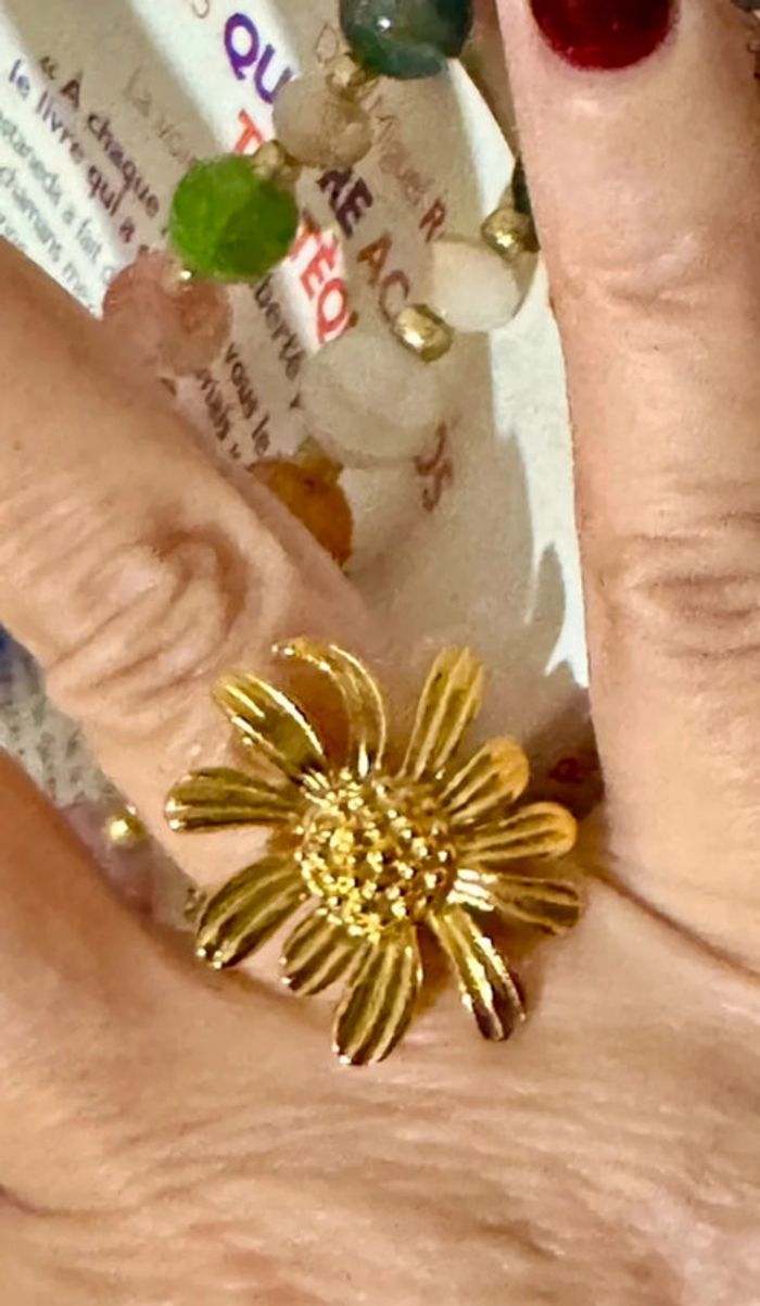 Bague fleur marguerite acier inoxydable or réglable neuve dans pochon