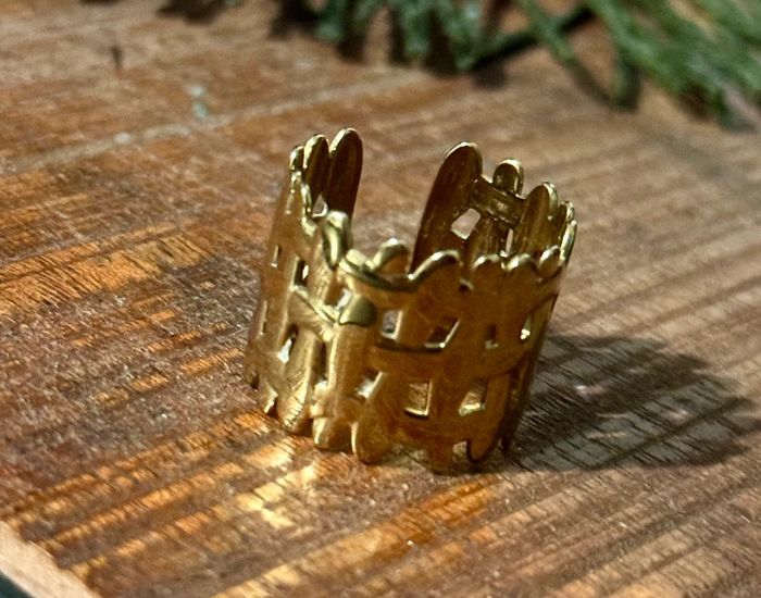 Bague large travaillée réglable acier inoxydable or - photo numéro 1