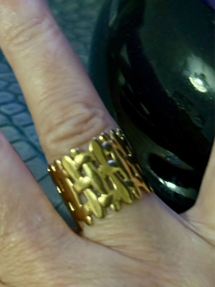 Bague large travaillée réglable acier inoxydable or - photo numéro 3