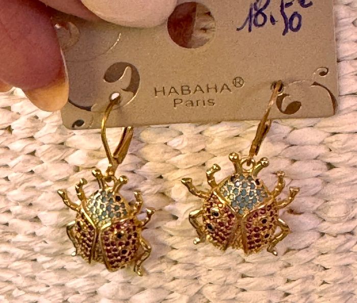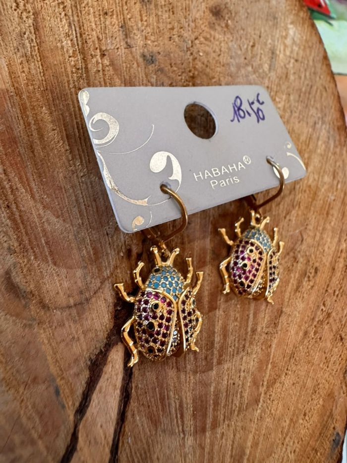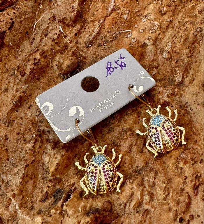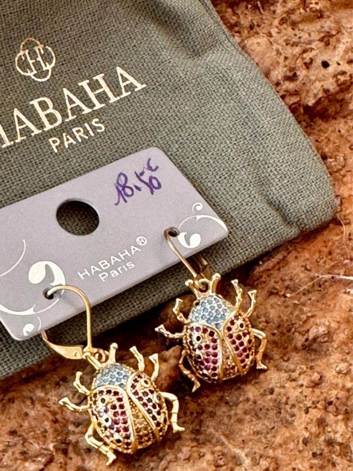 Boucles d’oreilles habaha Paris scarabée acier inoxydable or et cristaux couleurs - photo numéro 1