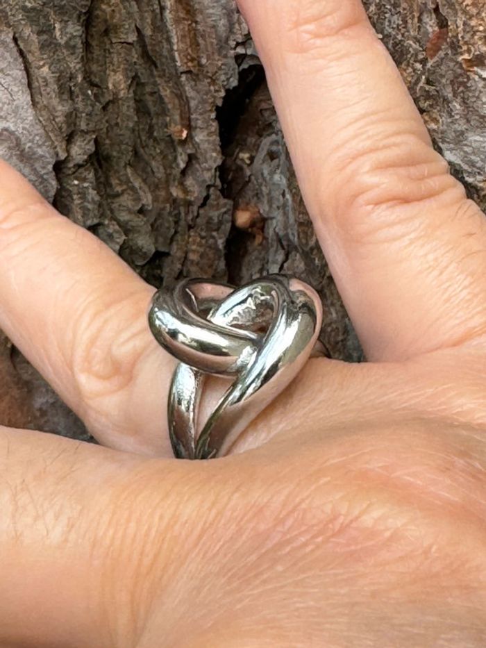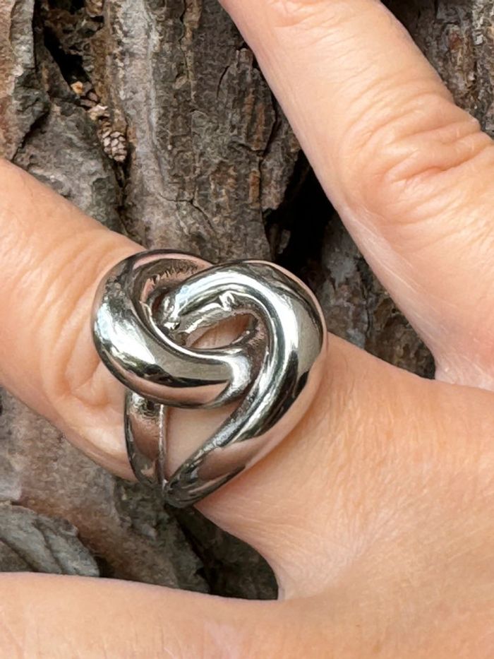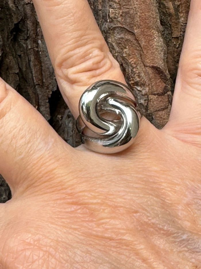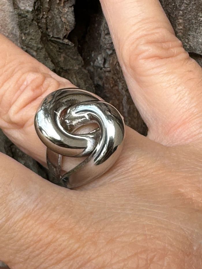 Bague double noeud entrelacés réglable de la taille 52 a 54 acier inoxydable argent