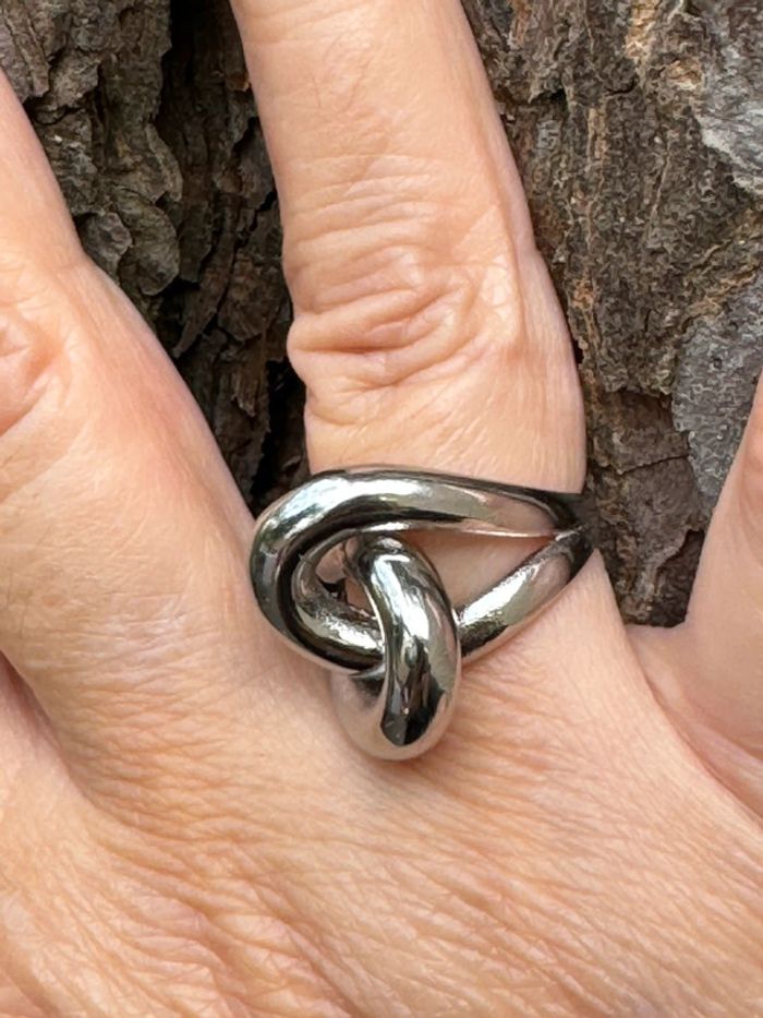 Bague réglable de la taille 52 à 54 (7 à 8 US) double noeud entrelacés acier inoxydable argent de qualité petit créateur