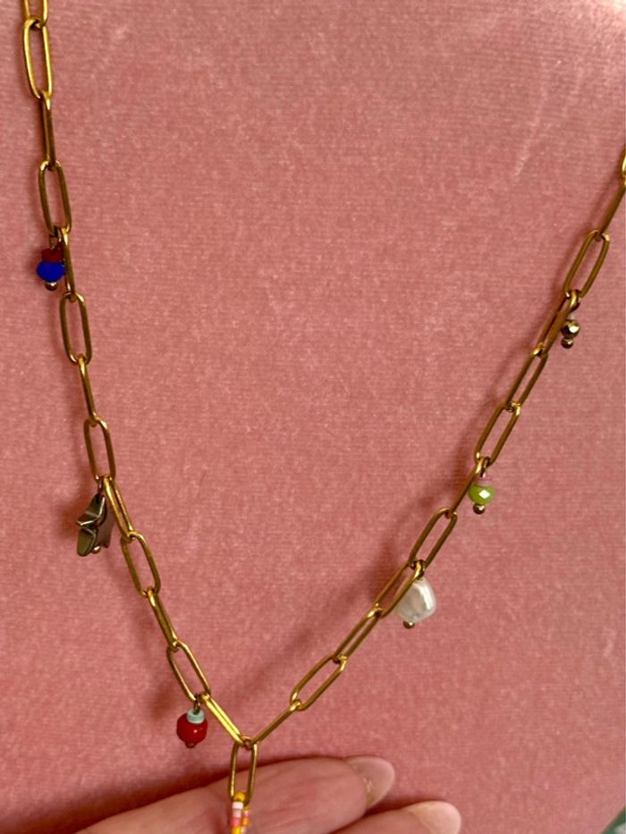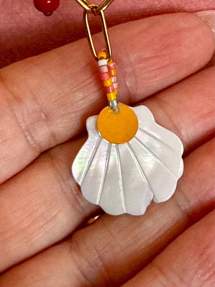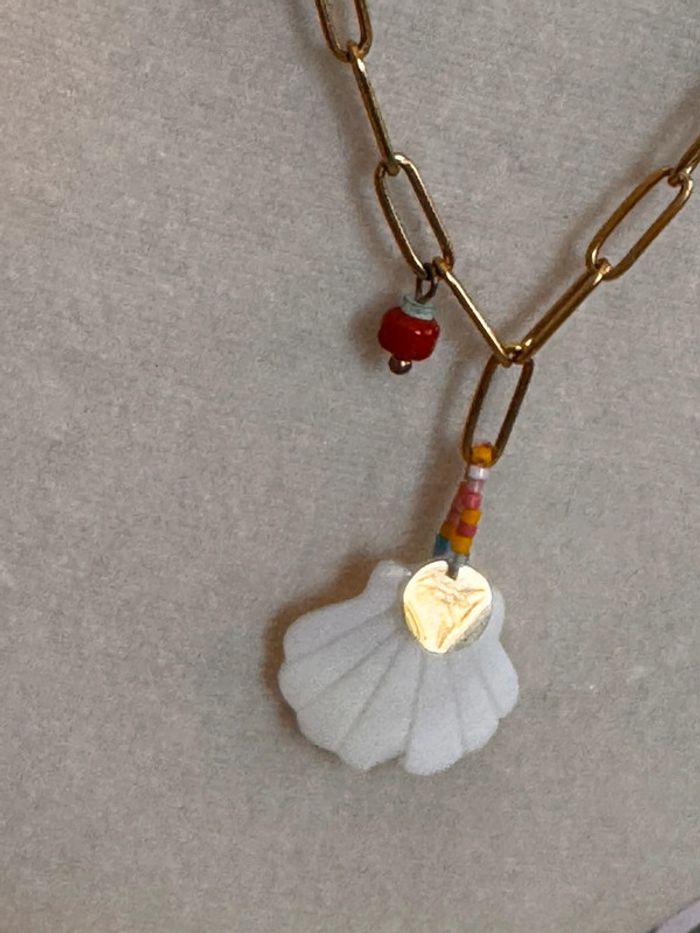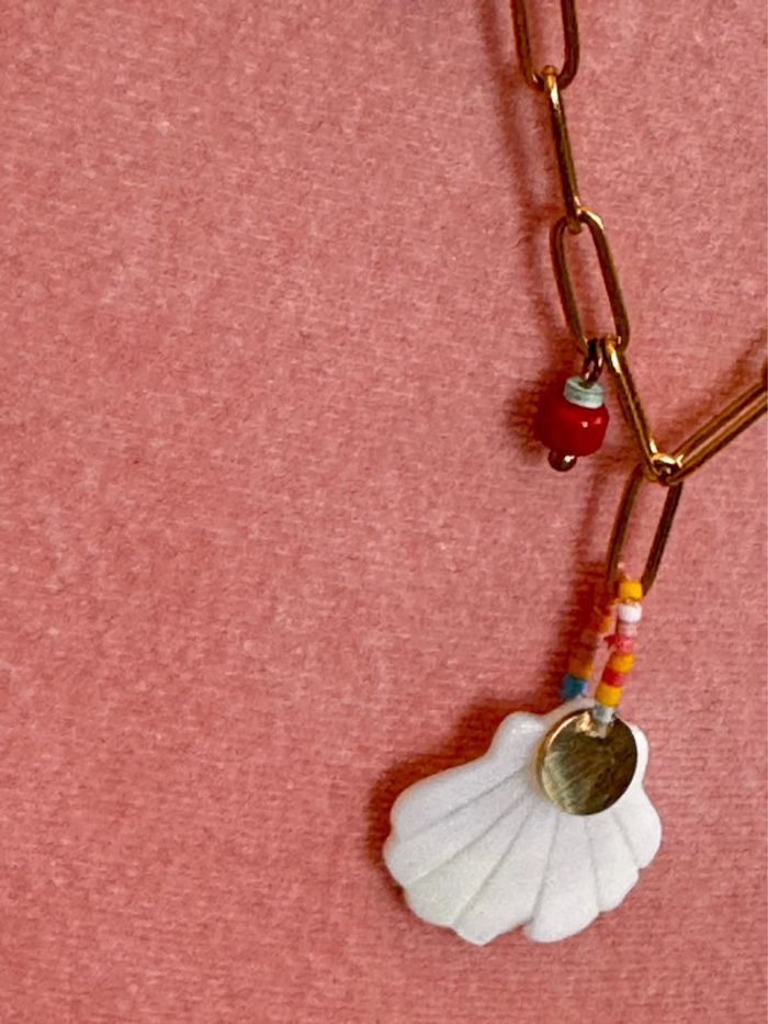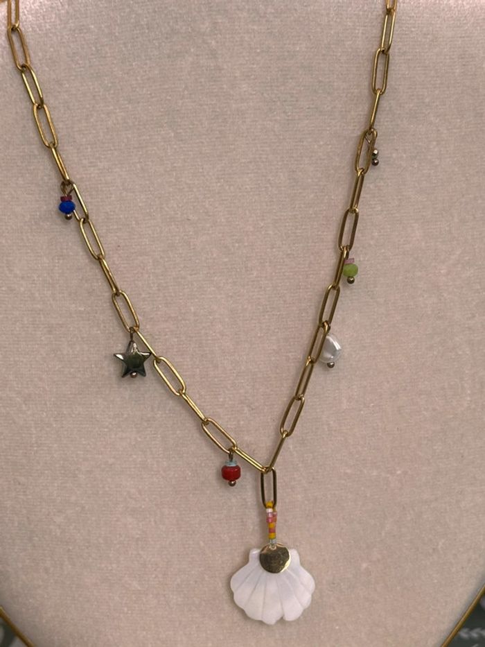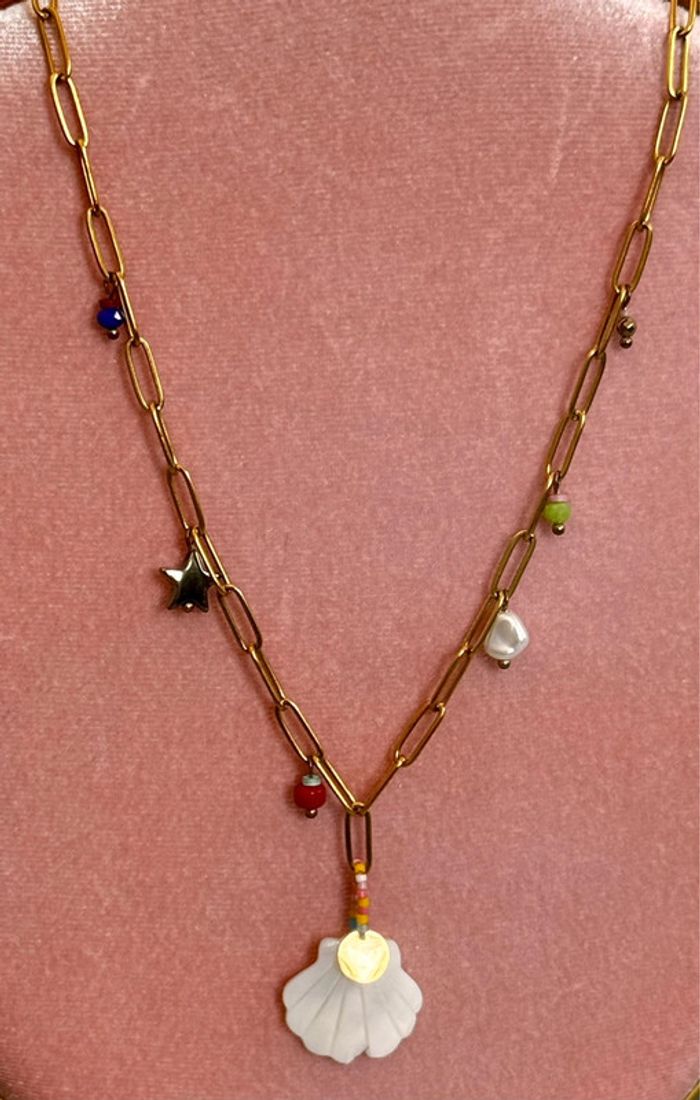 Collier mailles large coquillage perles étoile acier inoxydable or