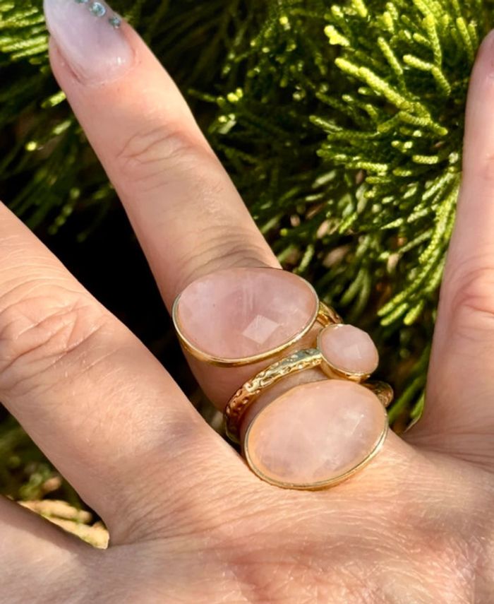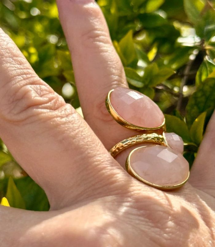 Grosse  bague réglable acier inoxydable or pierres pavés jade rose habaha paris - photo numéro 5