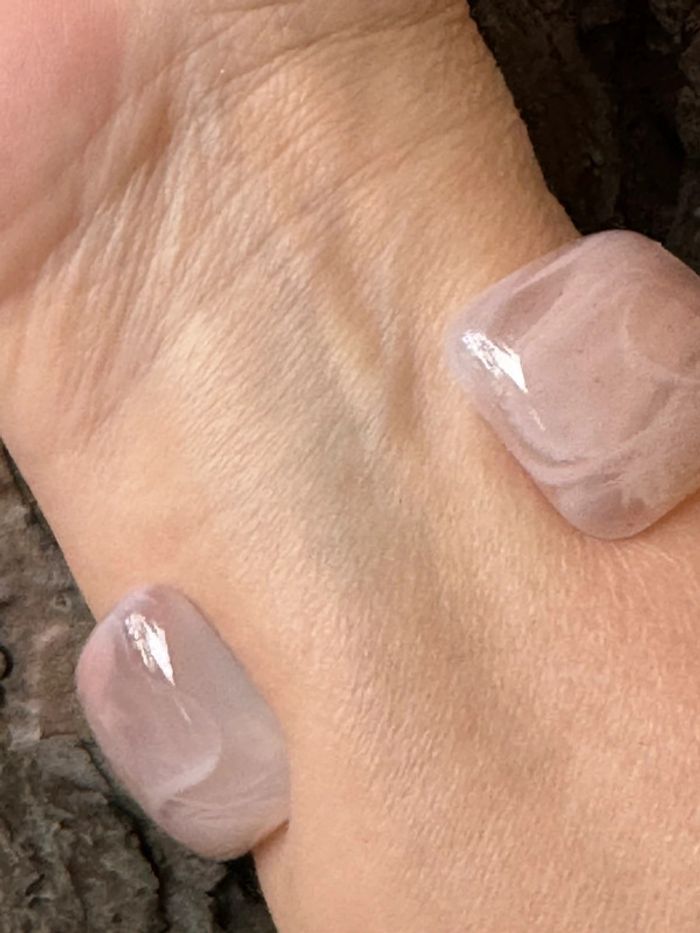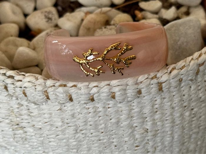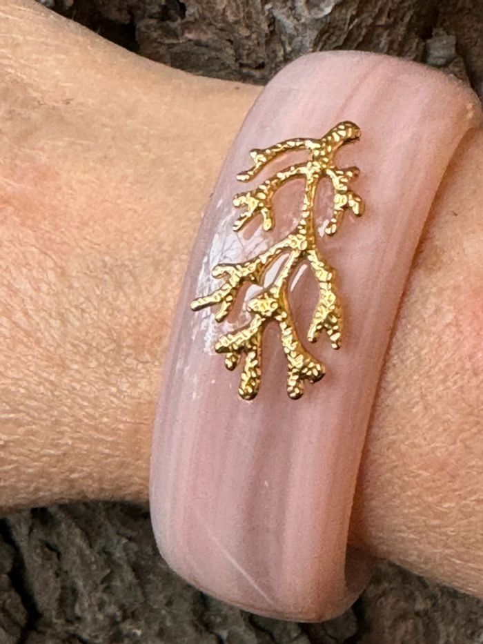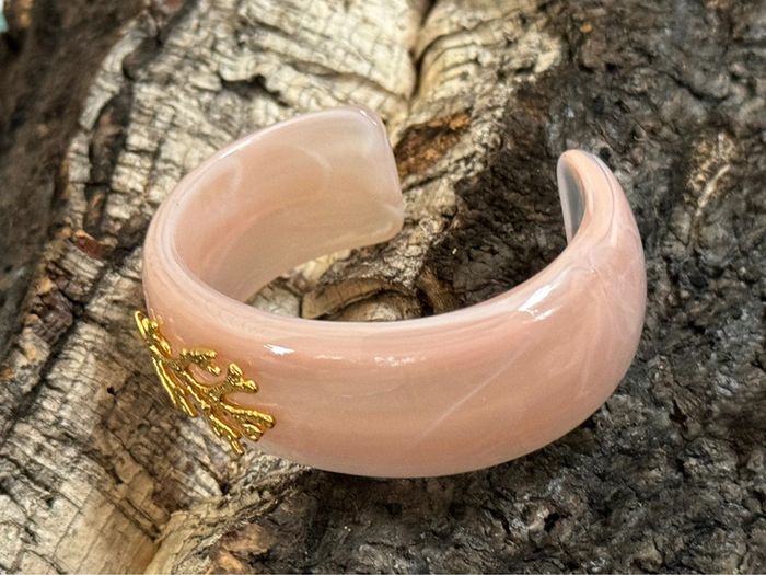 Bracelet jonc ouvert résine tons rose Mile Mila branches fleurs argués acier inoxydable or