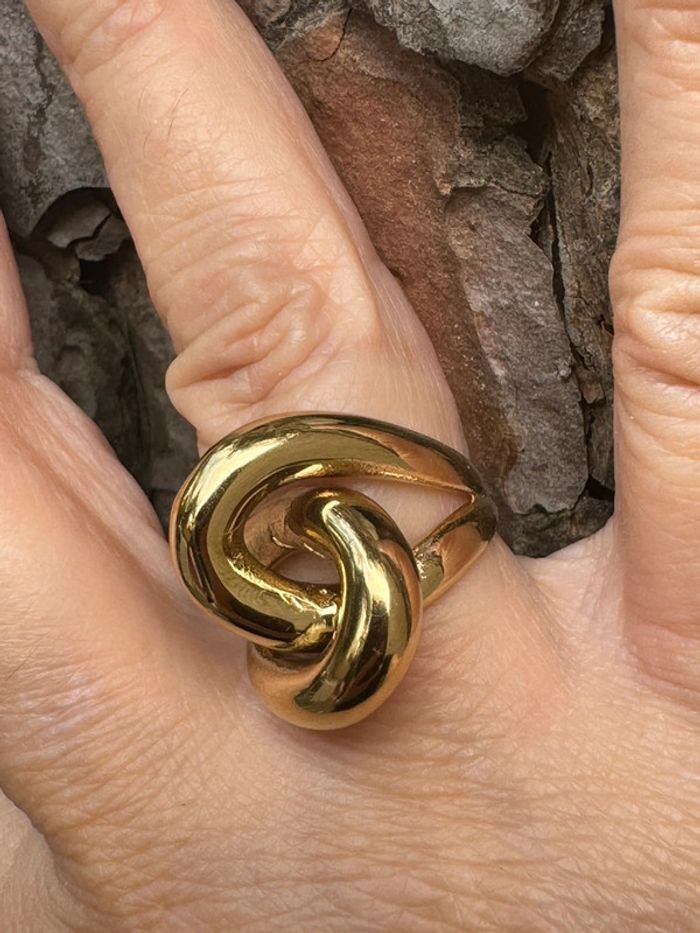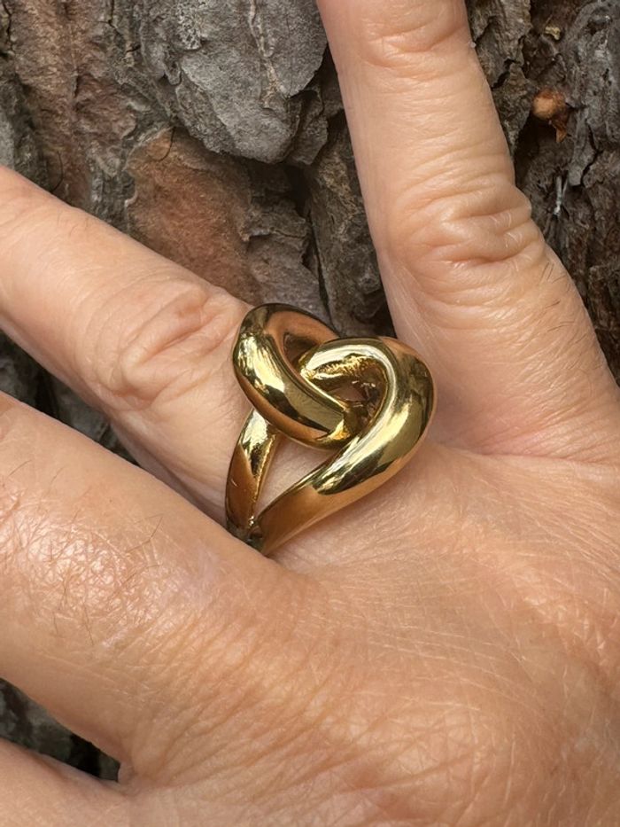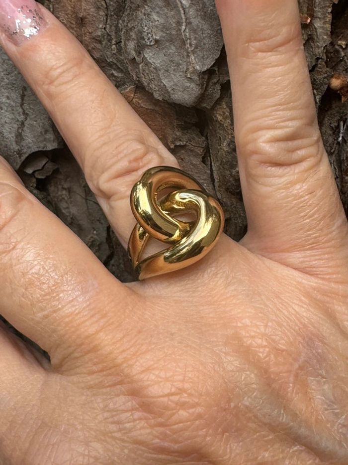 Superbe bague double noeud épais entrelacé acier inoxydable or de qualité réglable de la taille 52 à 54 ( 7 à 8) Neuve dans pochon Petit créateur