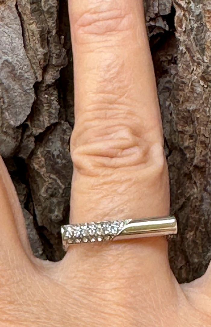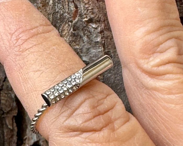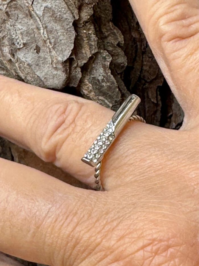 Bague acier inoxydable argent grande tige horizontale cristaux - photo numéro 5