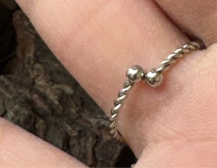 Bague réglable acier inoxydable argent de qualité avec une longue tige épaisse horizontale à demi fertile de cristaux. Neuve dans pochon Petit créateur