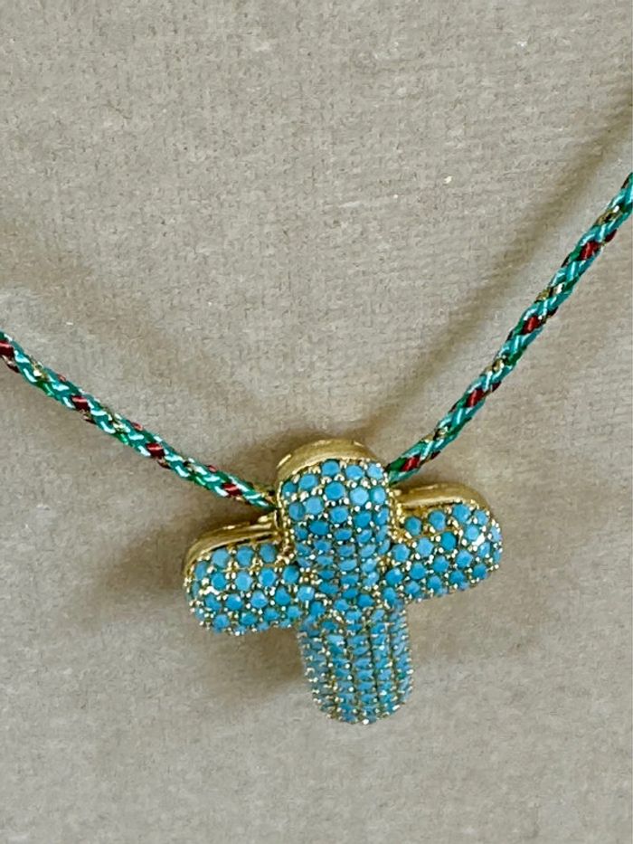 Collier habaha Paris cordon tressé réglable grosse croix épaisse perles turquoises - photo numéro 9