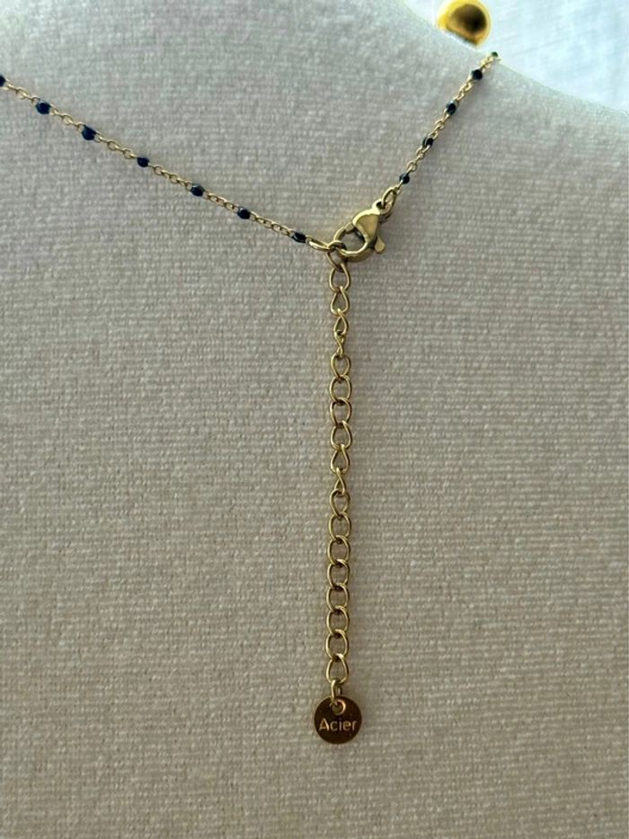 Collier chaine réglable acier inoxydable or perles résine noires croix cristaux noirs - photo numéro 4