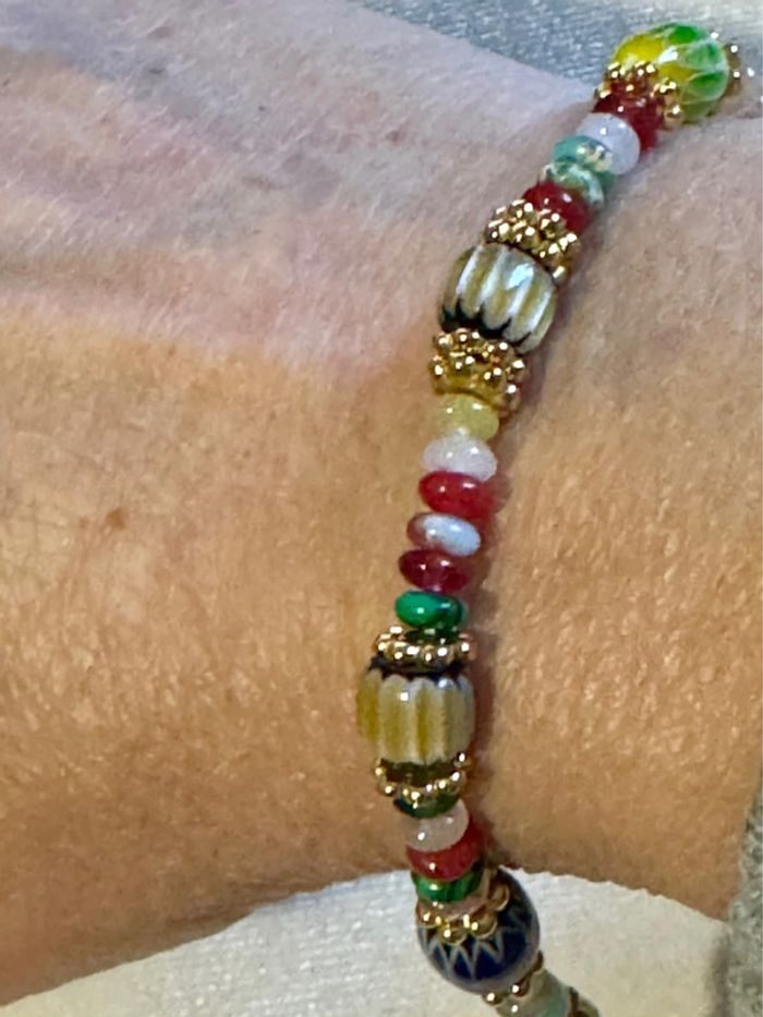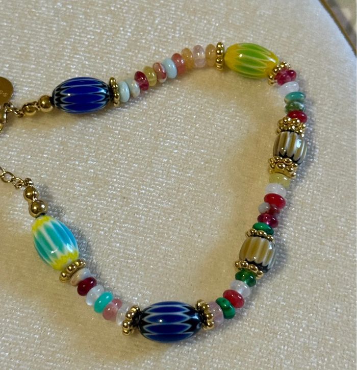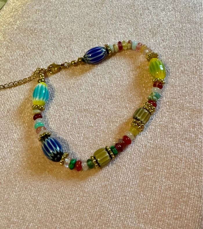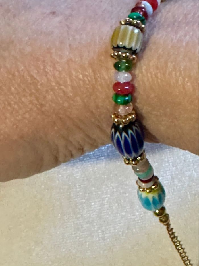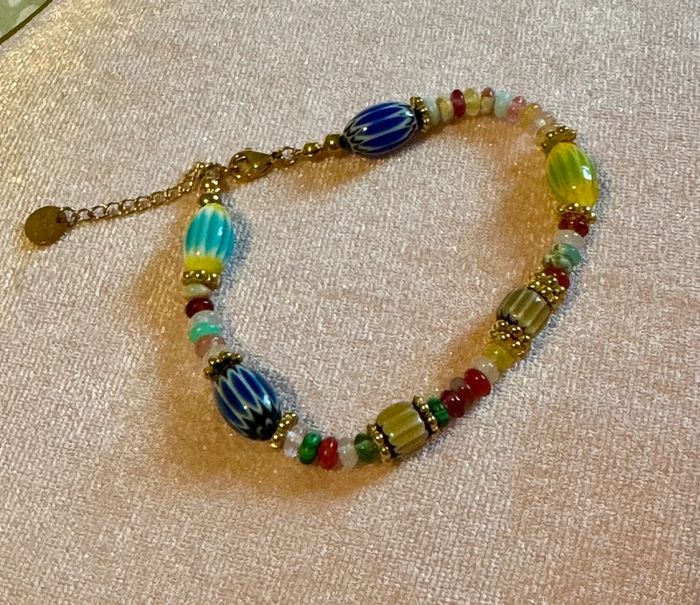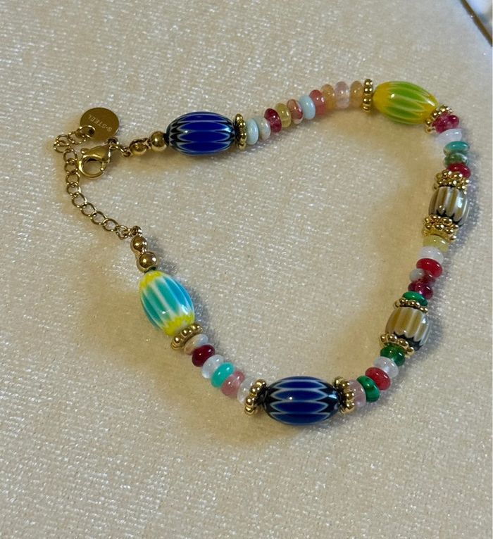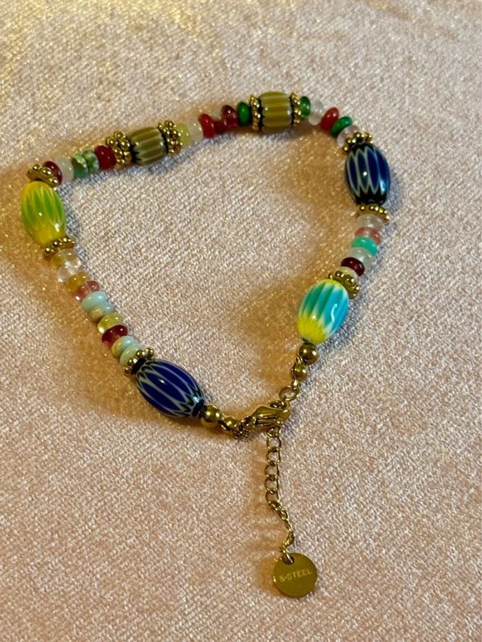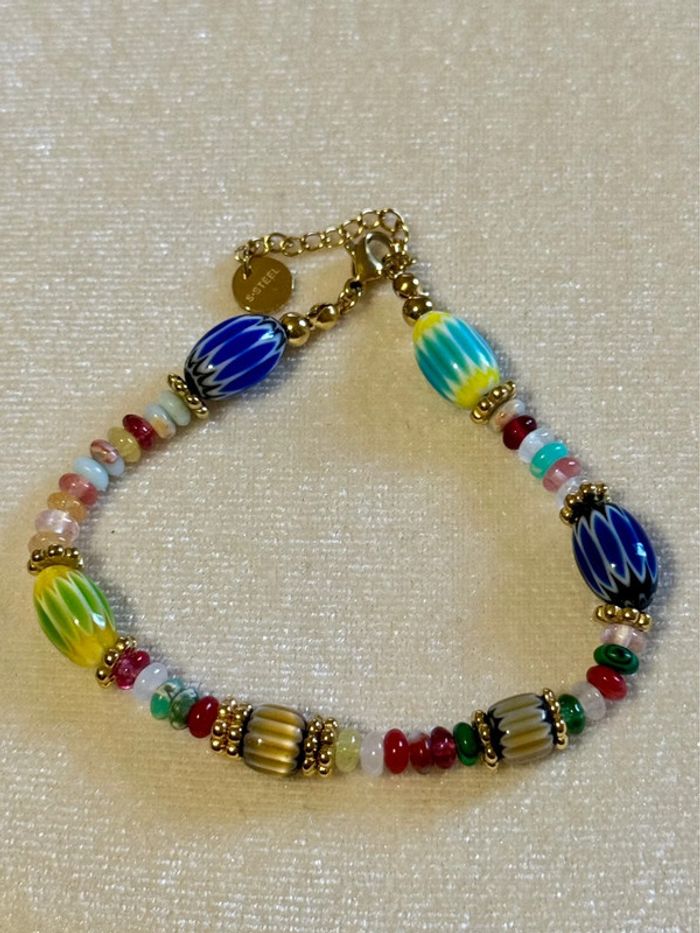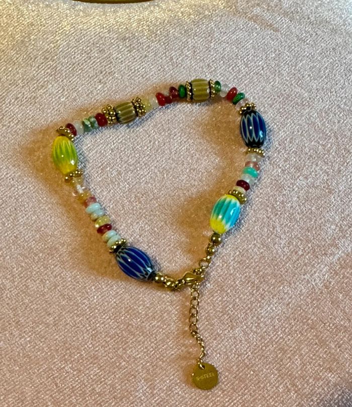 Bracelet grigri perles naturelles réglable acier inoxydable or
